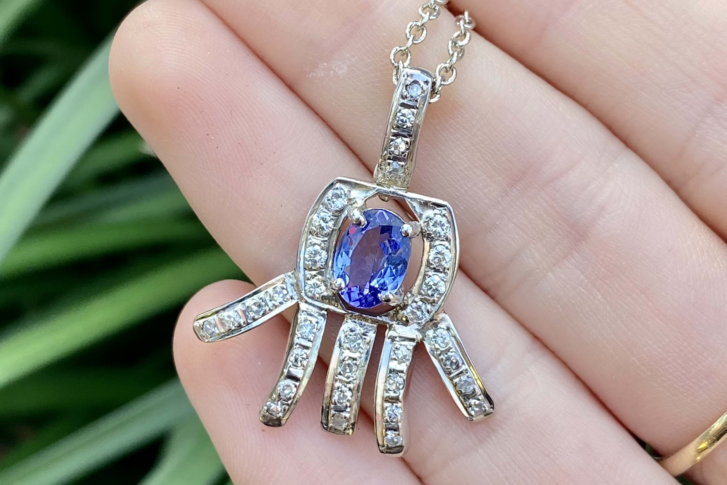 SOLD 9ct White Gold 1.14ct Tanzanite & 0.40ct Diamond Hand Design Enhancer