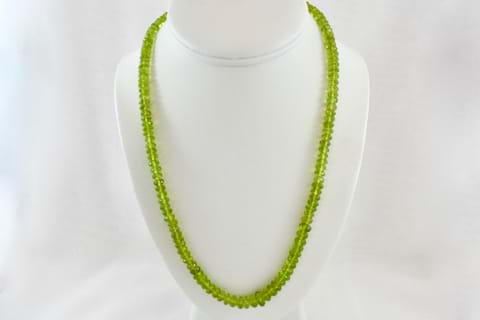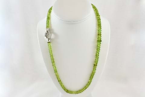 A summery and refreshing lime green these faceted peridot beads graduate in size and have a practical and pretty CZ set hex clasp.