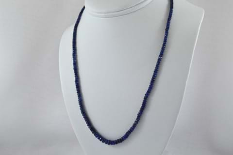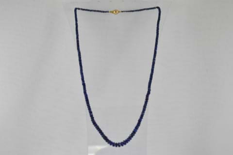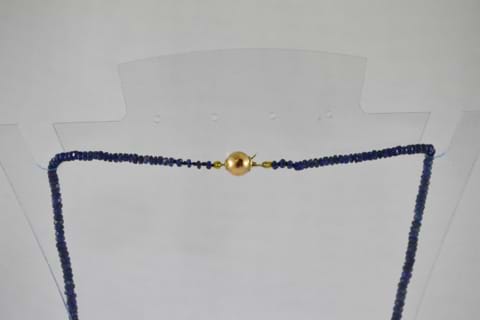 A striking and stunning strand of faceted mid-dark blue natural sapphires, hand strung with a 9ct yellow gold ball clasp. Independent Valuation Supplied