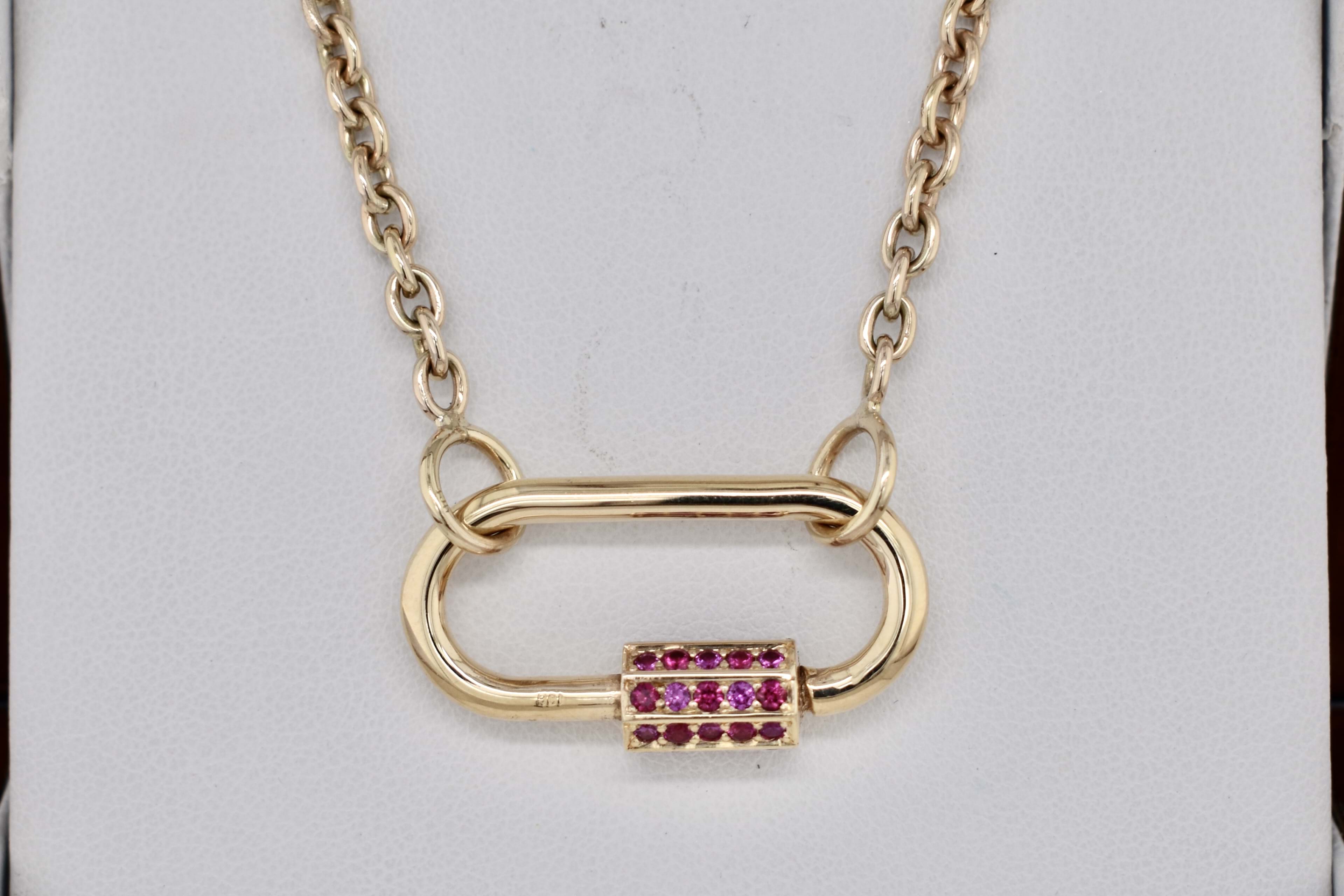 Archived 9ct Yellow Gold Pink/Hot Red Sapphire Oval Carabiner