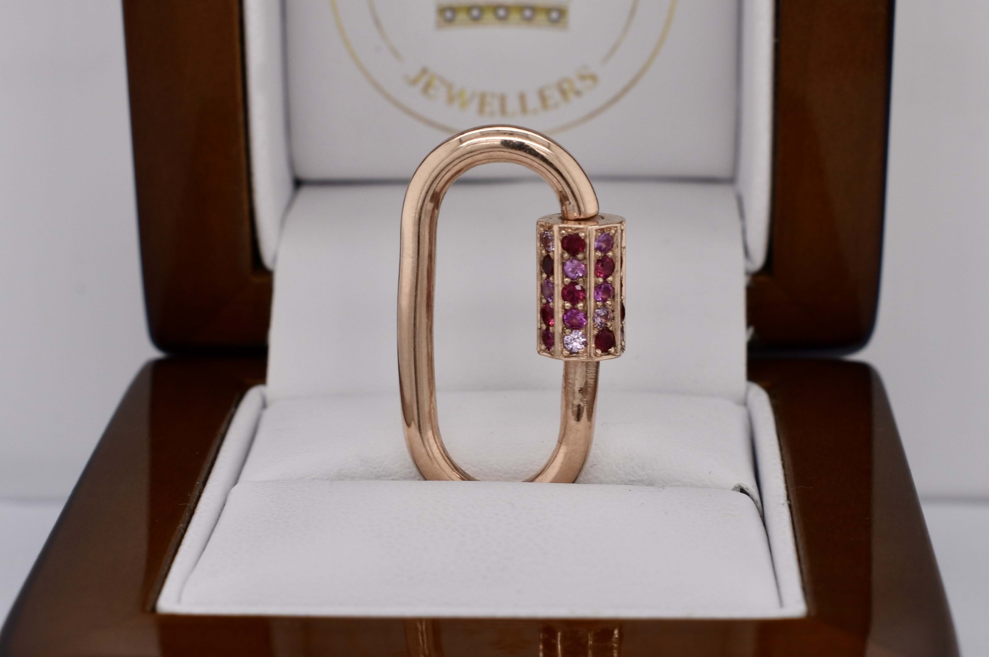 SOLD 9ct Rose Gold 1.20ct Multi Tone Pink Sapphire Oval 30x15mm Carabiner