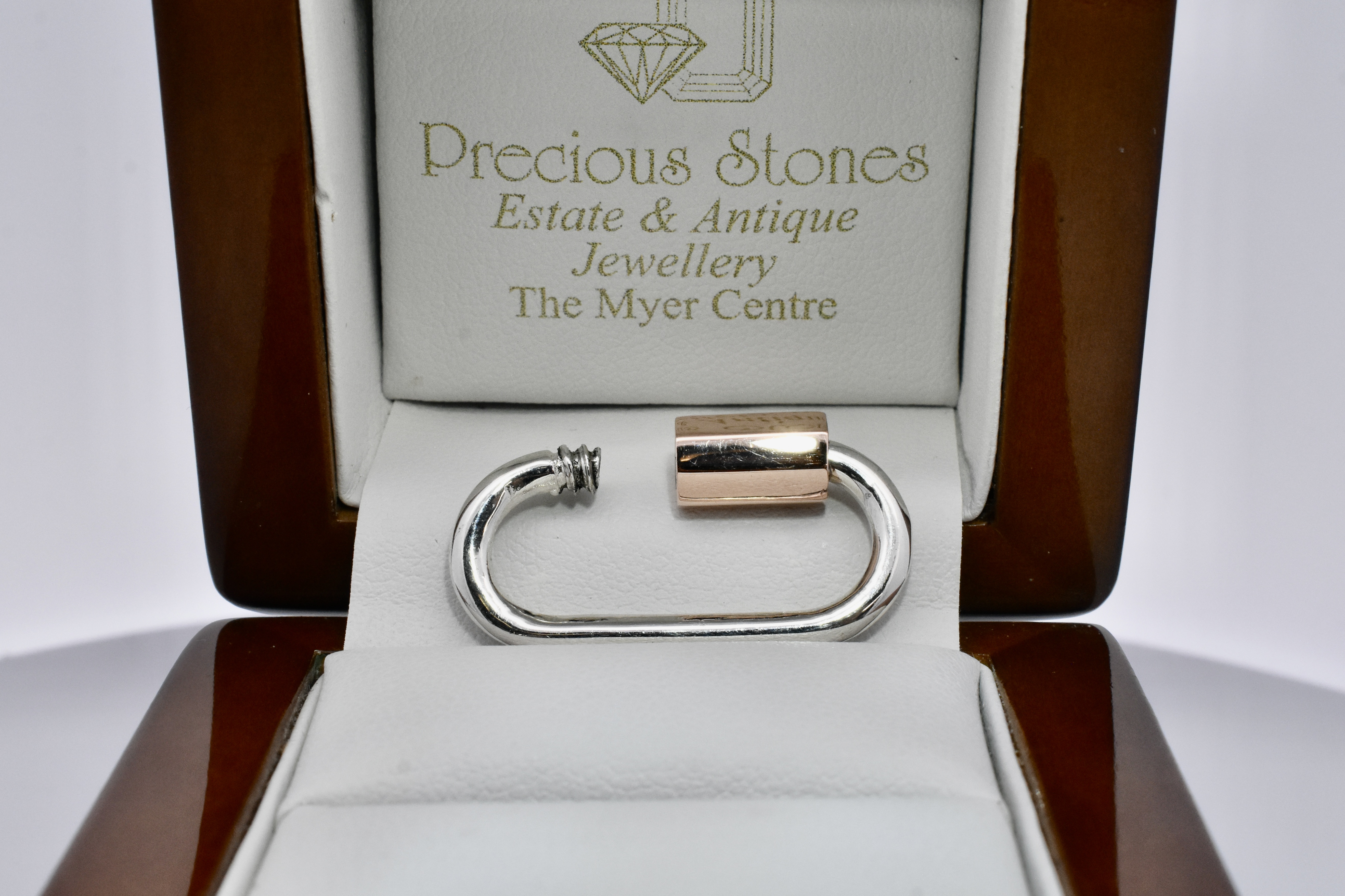 SOLD 1Sterling Silver & 9ct Rose Gold Two Tone Elongated Oval Carabiner