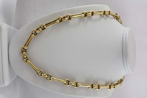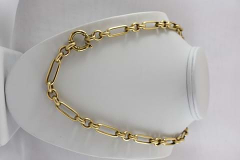 Crafted in 9ct yellow gold this figaro style link chain features alternating textured links with a large boltring fitting. Weight: 60grams Length: 56cm. Independent Valuation Supplied