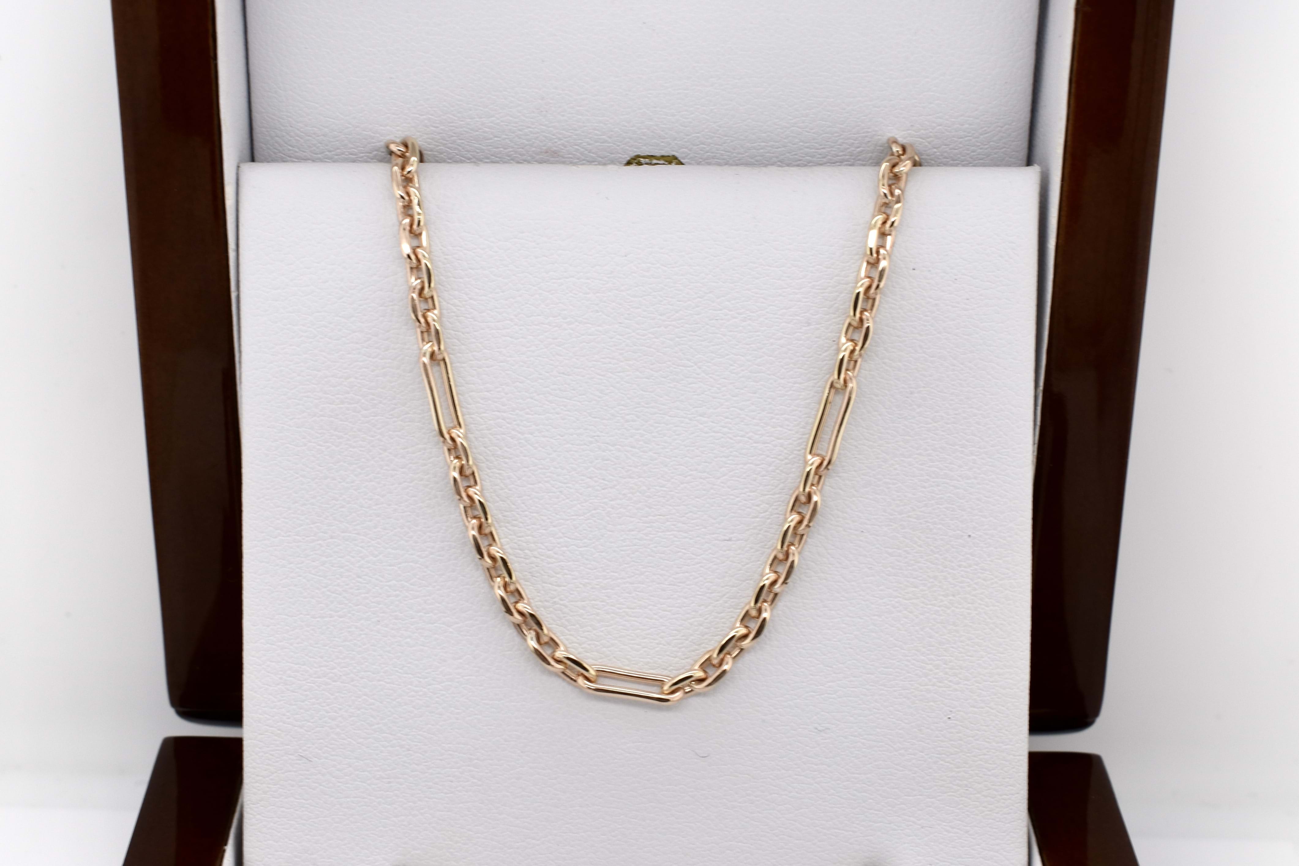 This beautiful chain is perfect for everyday wear and would also look great as a layerable piece, crafted from 9ct yellow gold in figaro 9+1 link and finished with two jump ring ends. Chain weighs 13.6grams and is 47cm long.