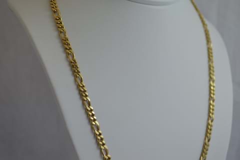 9ct yellow gold solid figaro chain, 3:1. Good size either worn by itself or a heavy pendant hung off the chain. Total weight of the chain 22 grams