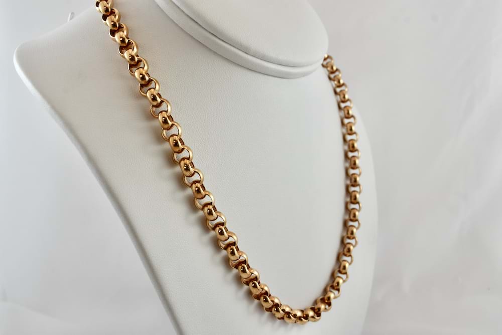 Classic and timeless 9ct rose gold solid belcher chain with boltring clasp and end finials. Measuring a finish length of 45cm and weighing 46grams, link is 6.6mm wide.