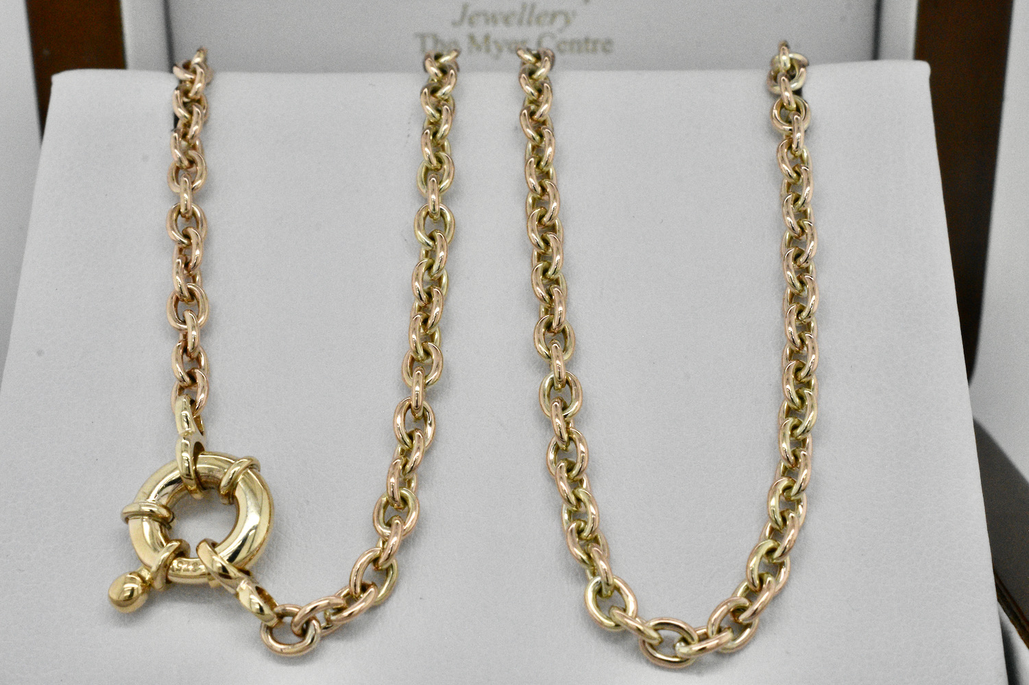 A timeless and classic solid 9ct yellow gold cable link handmade by our gold smith with a boltring clasp. Total length is 57cm, total weight is 19grams