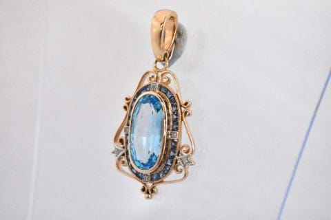 SOLD 9ct Rose Gold Blue Topaz & Ceylon Sapphire Enhancer