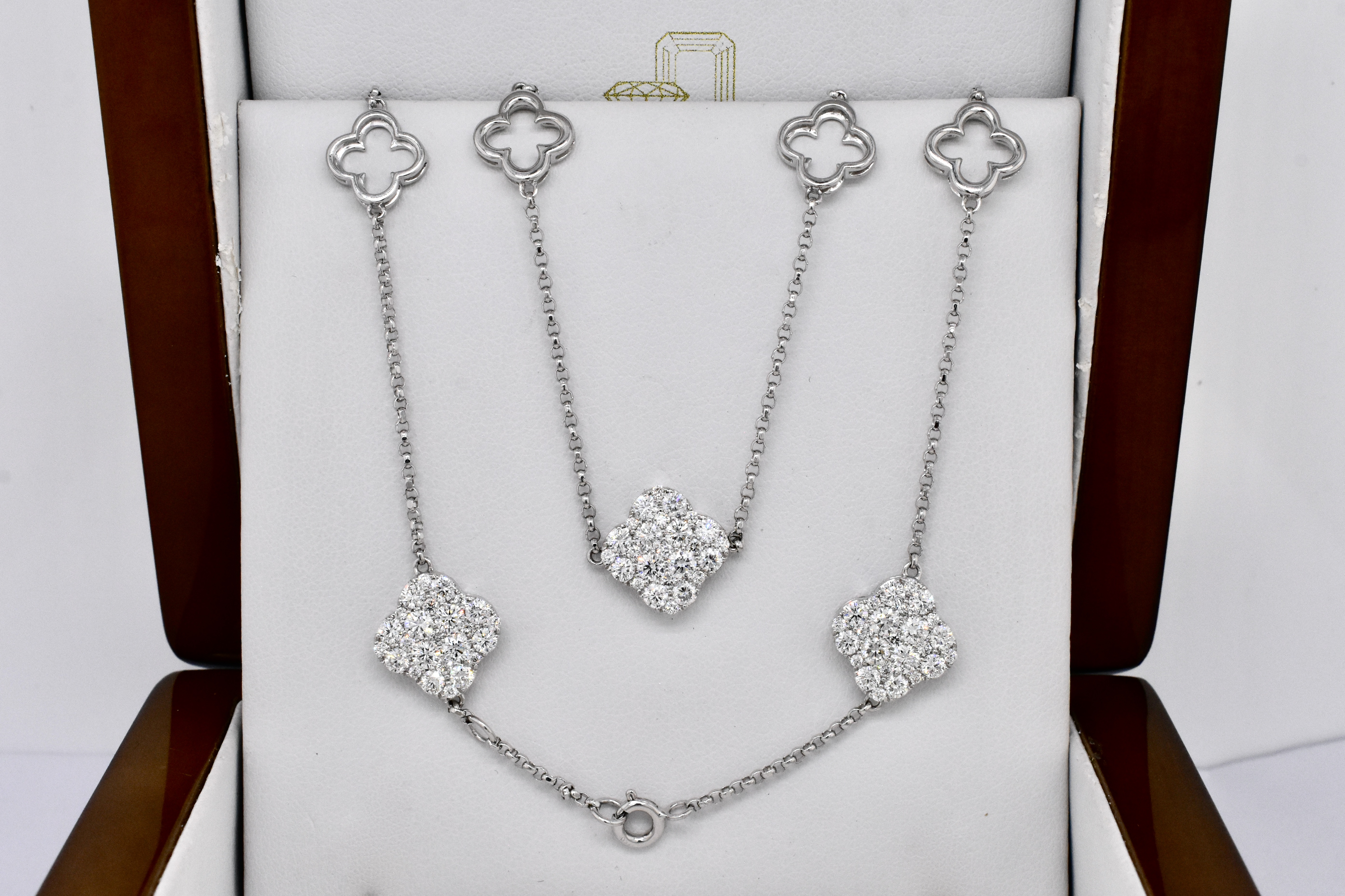 SOLD 18ct White Gold 4.00ct Diamond Stationed Clover 42.5cm Necklet