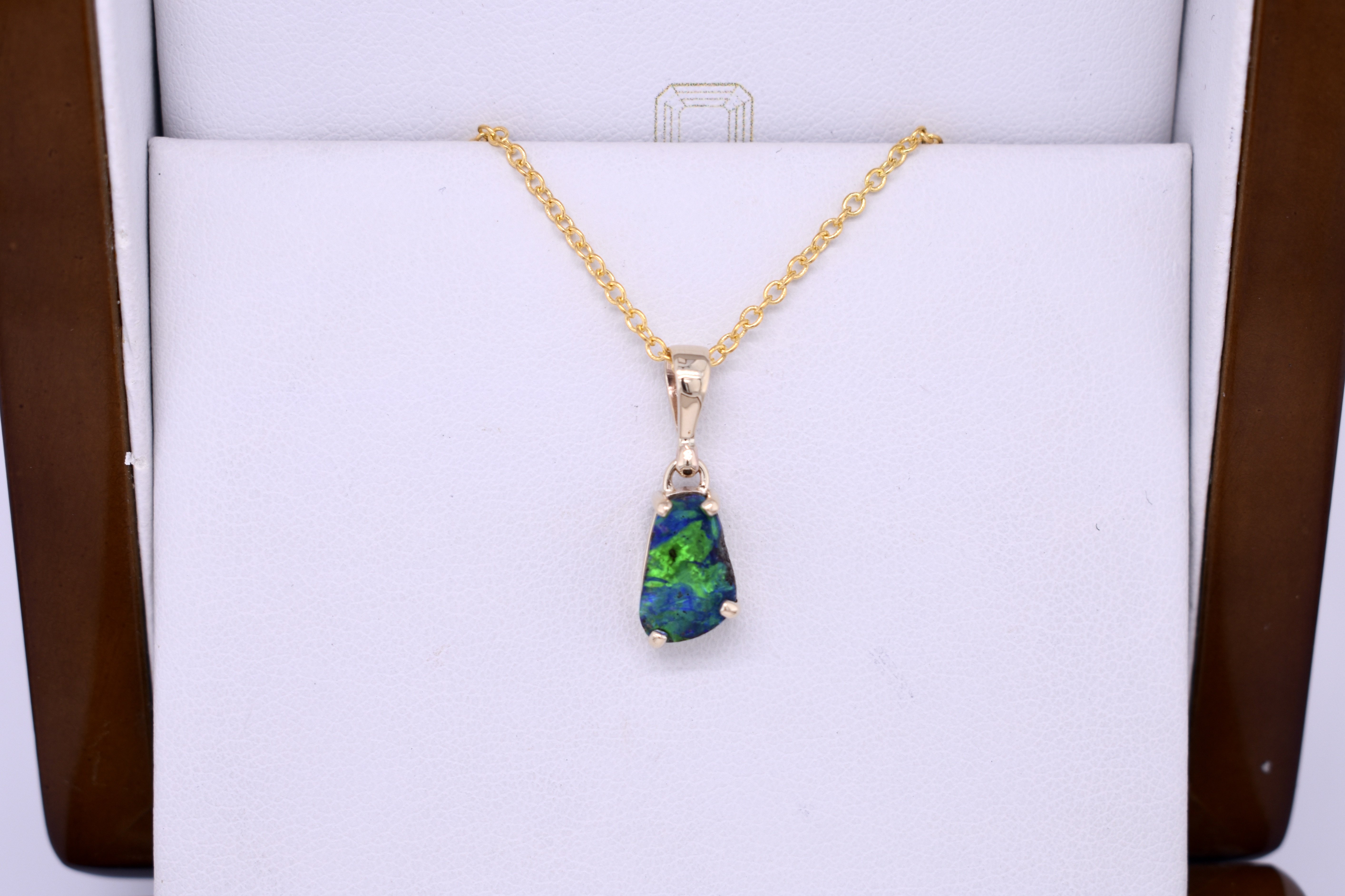SOLD Handmade 9ct Yellow Gold Freeform Boulder Opal Pendant