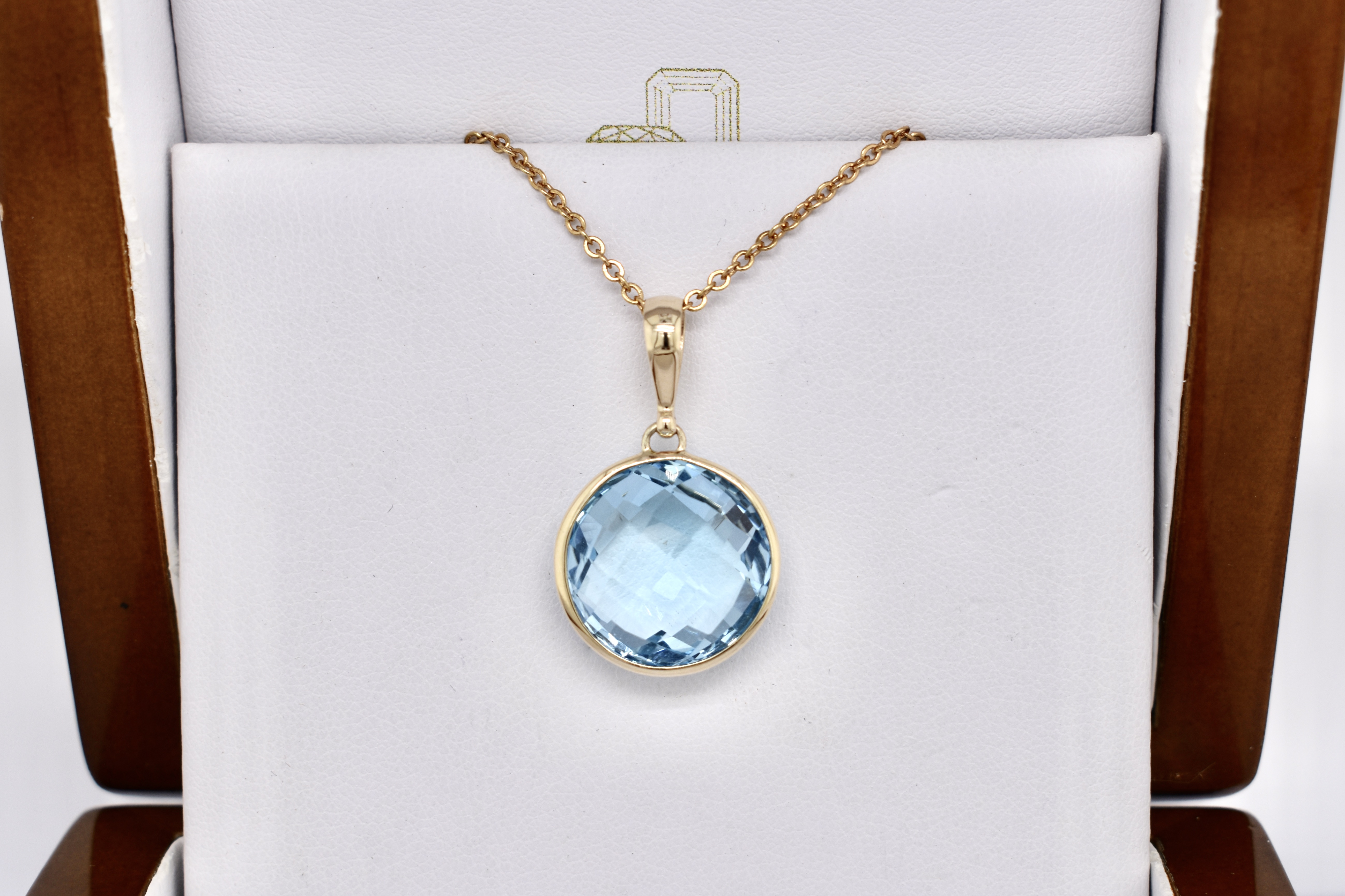 SOLD 9ct Yellow Gold 15mm Round Sky Blue Topaz Pendant