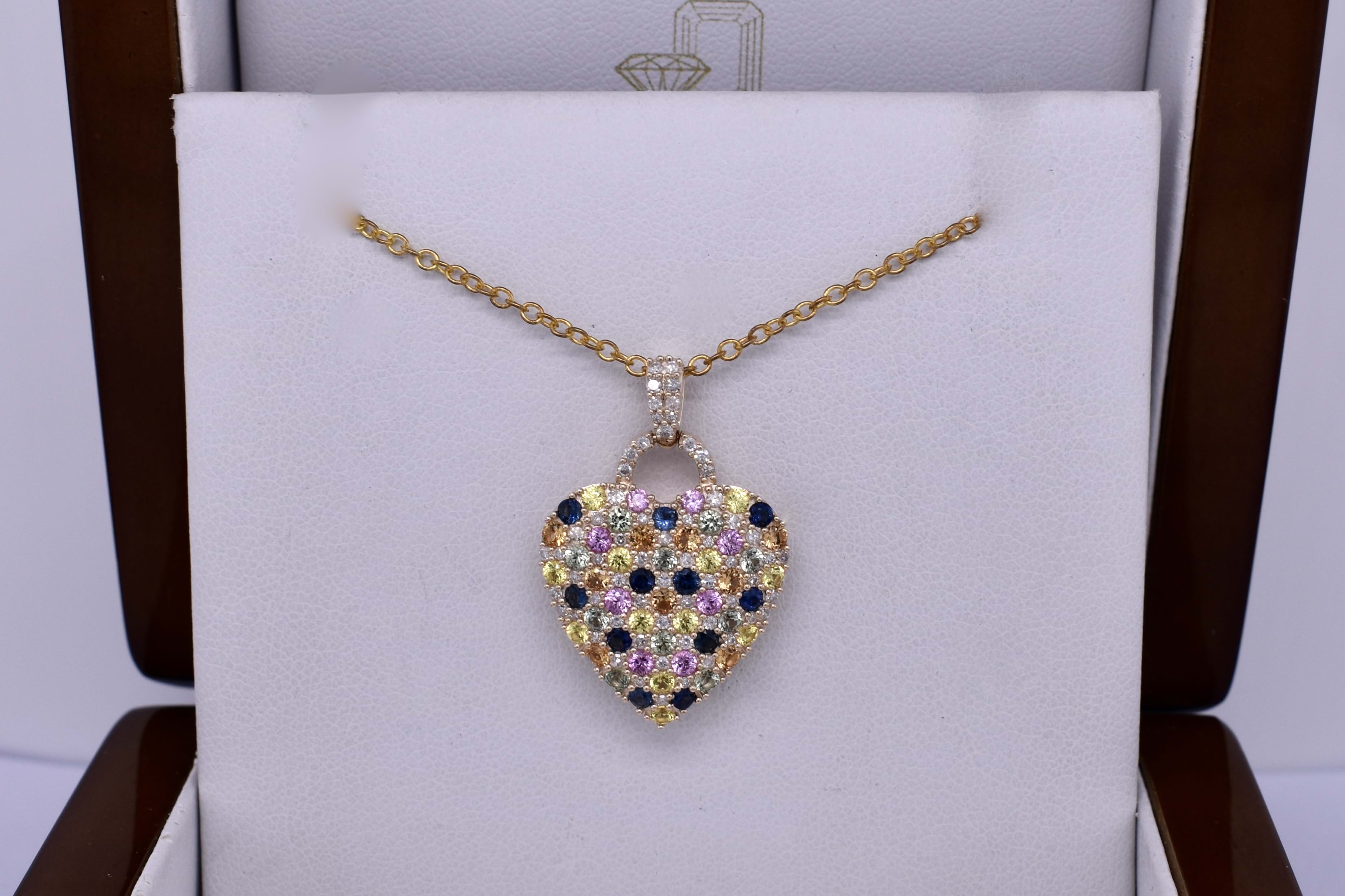 SOLD 9ct Yellow Gold Multi Coloured 2.28ct Pave Sapphire & 0.25ct Diamond Pendant