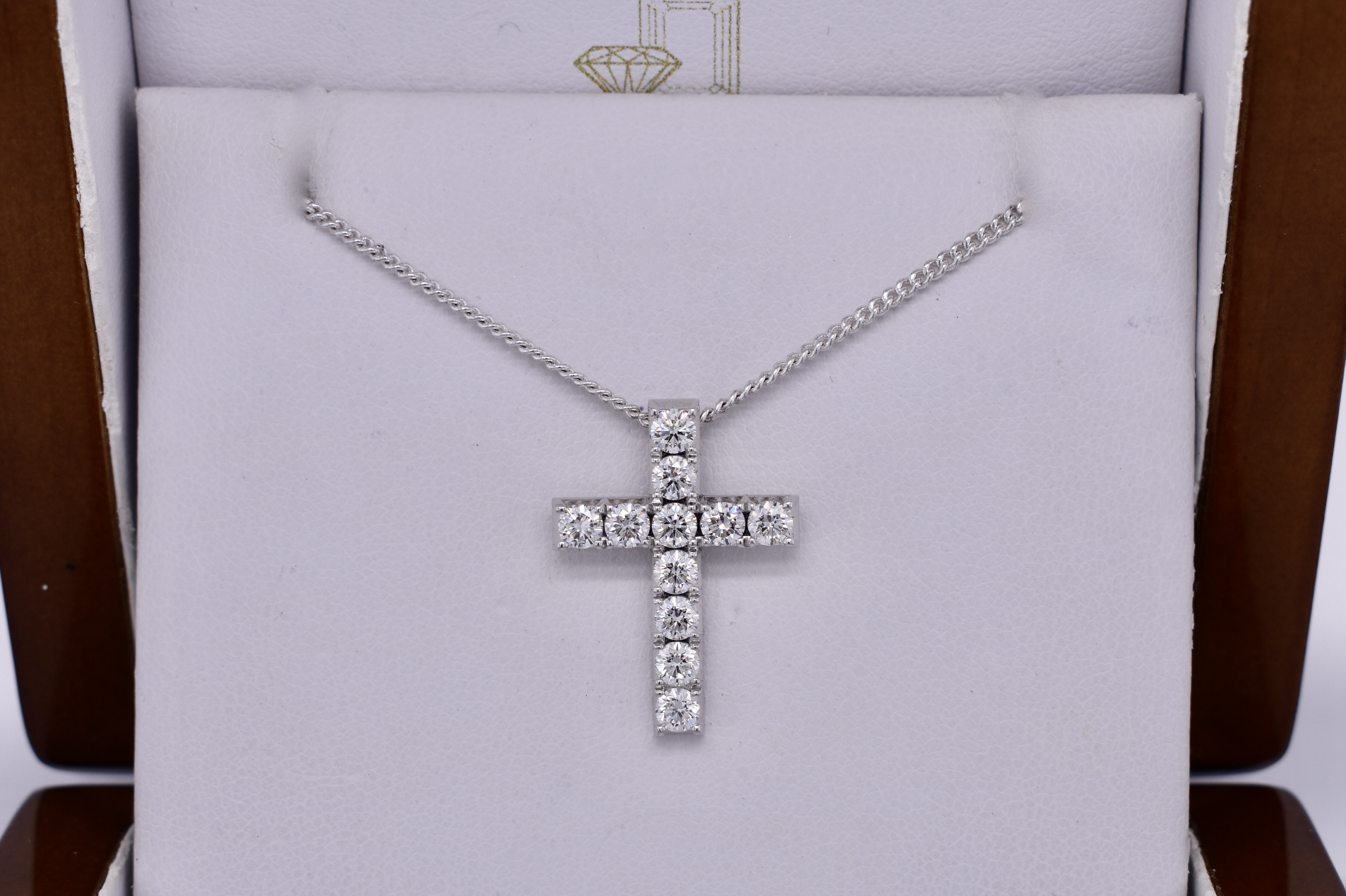 SOLD 18ct White Gold 1.48ct Diamond Cross Pendant