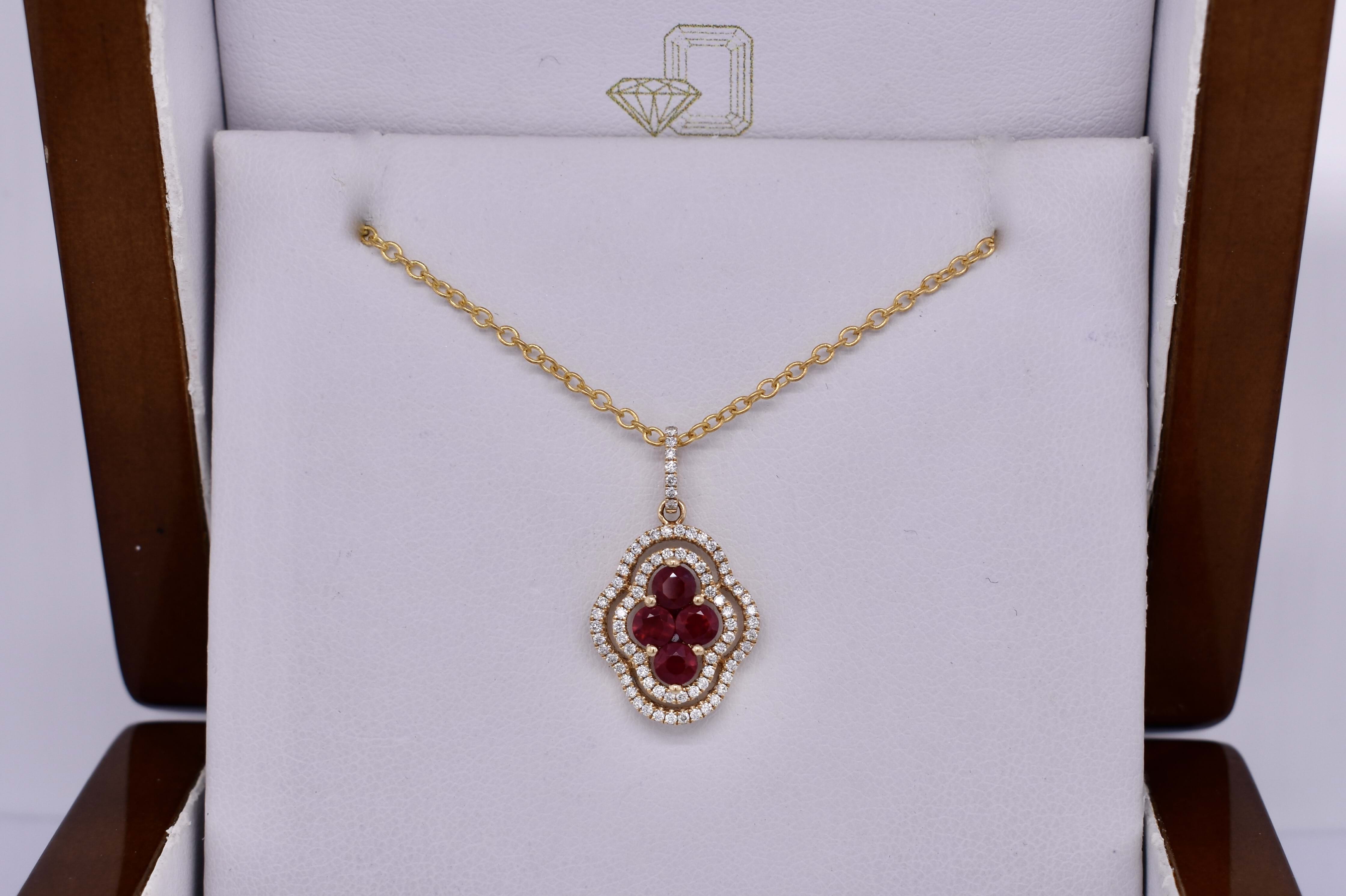 SOLD 18ct Yellow Gold 0.86ct Ruby & 0.32ct Diamond Scalloped Halo Pendant