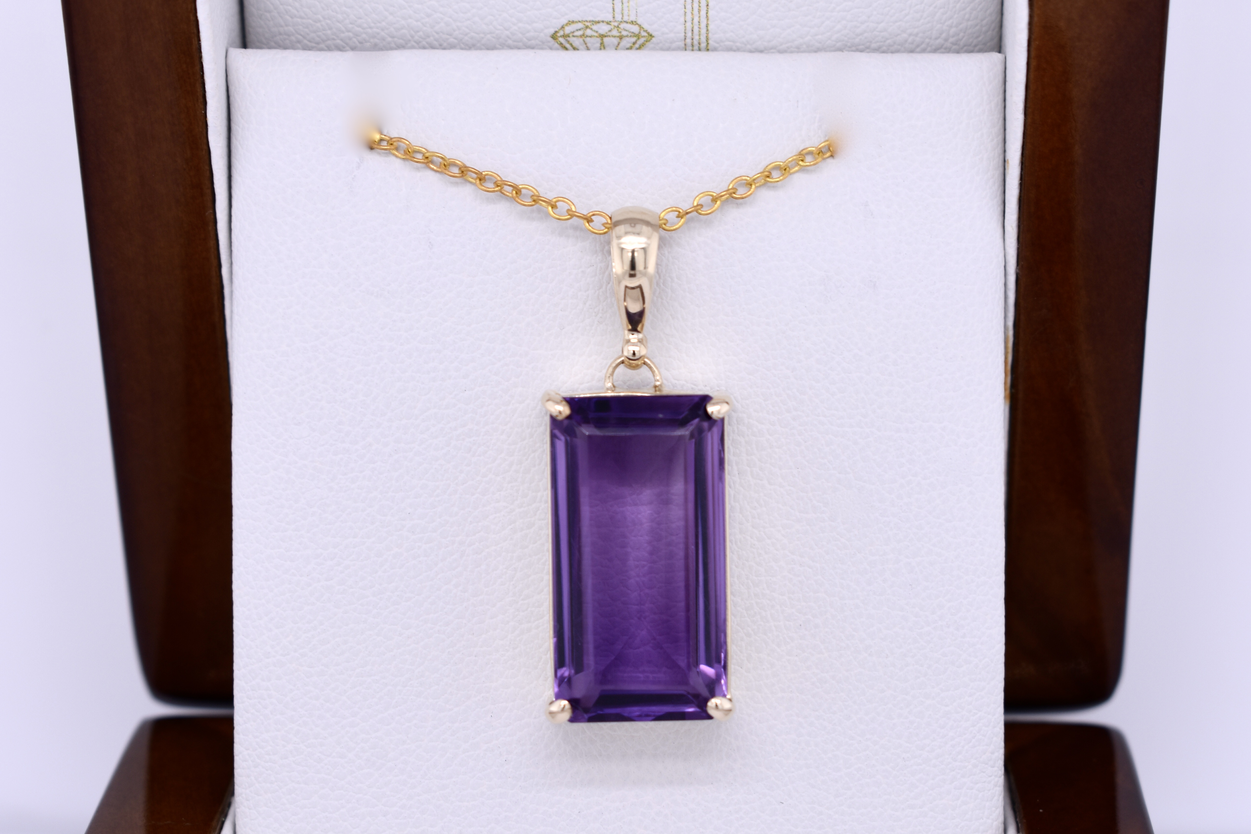 SOLD 9ct Yellow Gold Emerald Cut 12.50ct Amethyst Pendant