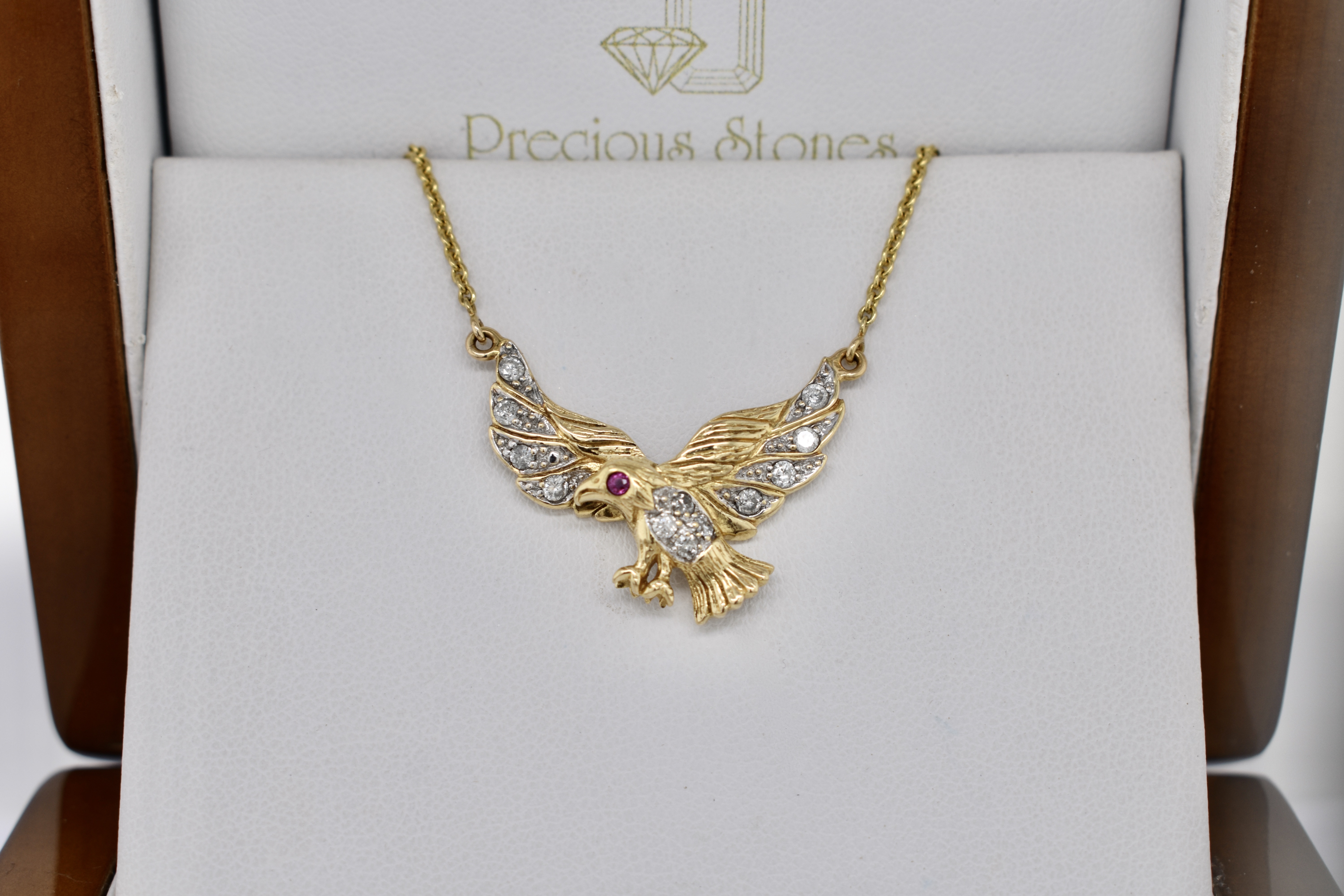 SOLD 18ct Yellow Gold Ruby & 0.35ct GH P1-2 Diamond Eagle Necklet