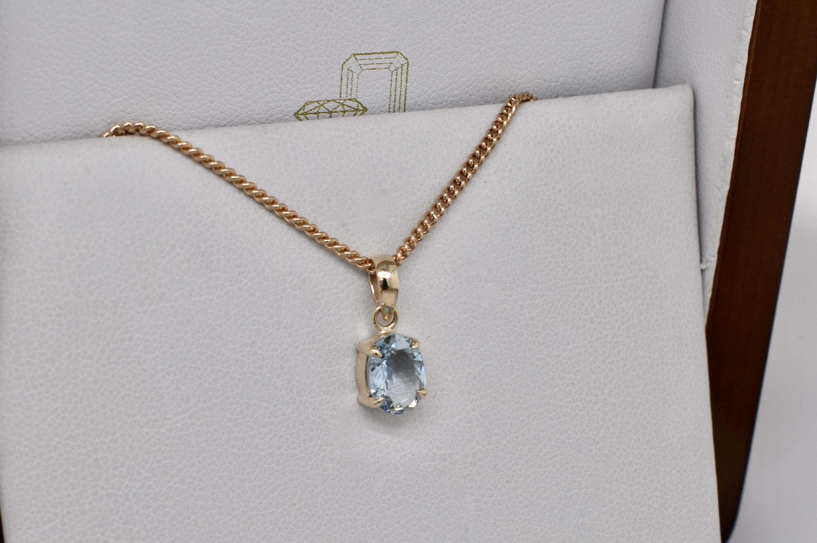 SOLD Handmade 9ct Yellow Gold 7 x 5mm Oval Aquamarine Pendant