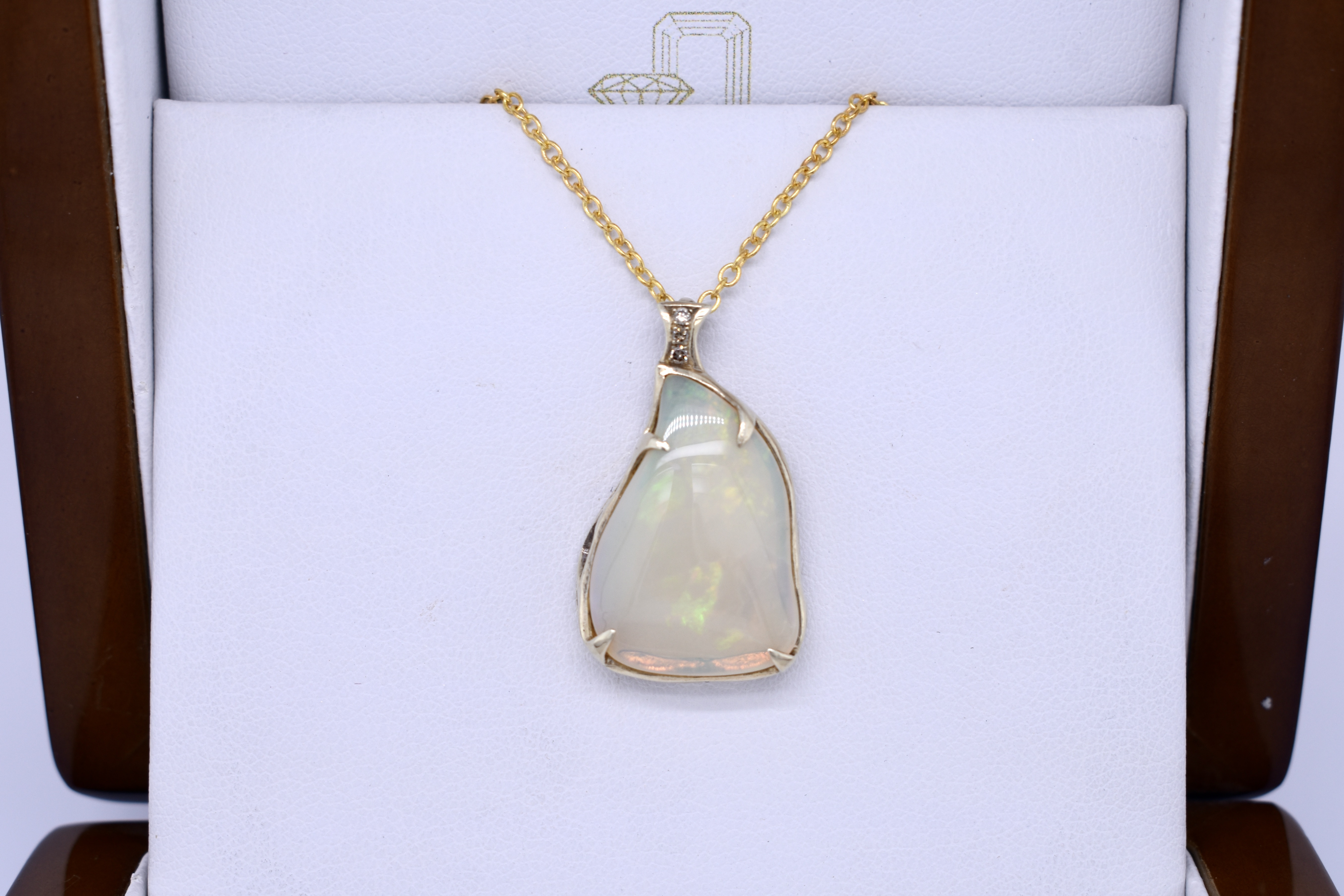 SOLD 18ct Yellow Gold 4.34ct Opal & 0.14ct G VS Diamond Pendant