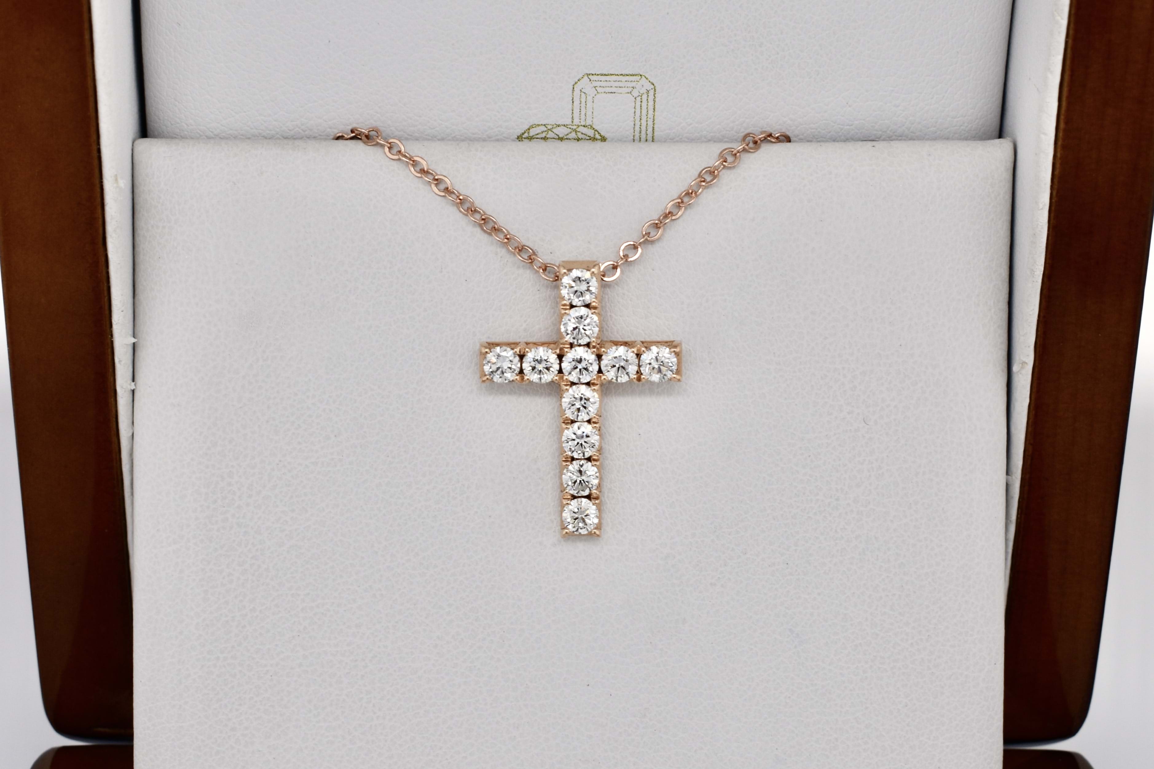 SOLD 18ct Rose Gold 1.41ct G VS Diamond Cross Pendant
