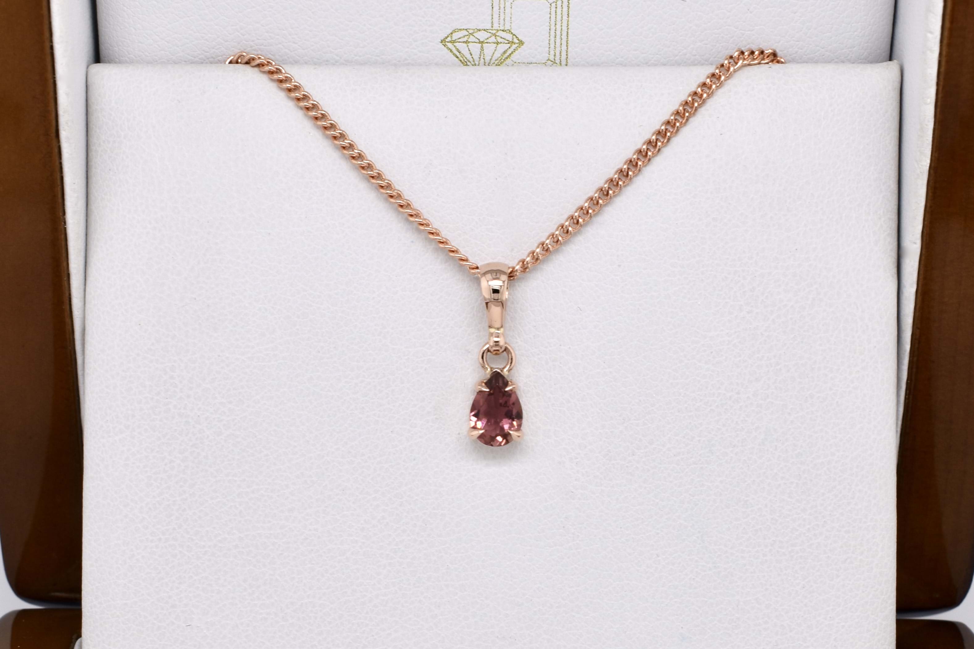 SOLD Handmade 9ct Rose Gold Pear Shaped Pink Tourmaline Pendant