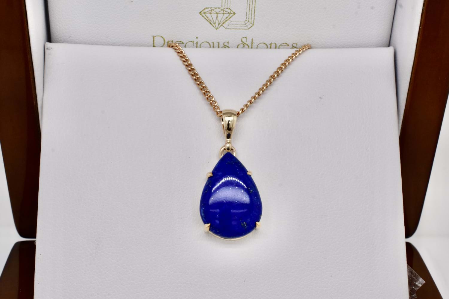 SOLD Handmade 9ct Yellow Gold Pearshape Lapis Pendant