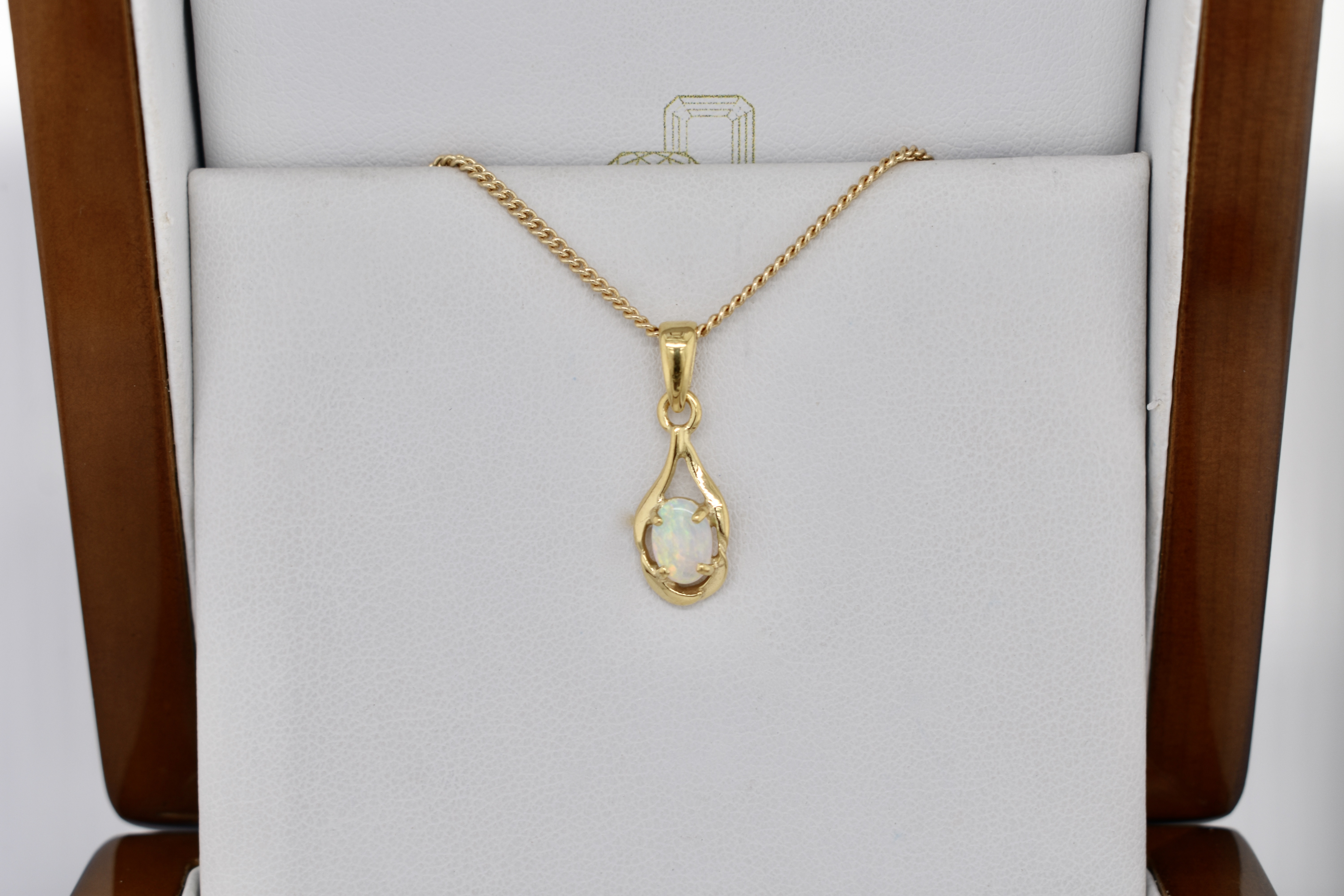 SOLD 18ct Yellow Gold 0.43ct White Pear Shaped Opal & 0.18ct Diamond Pendant
