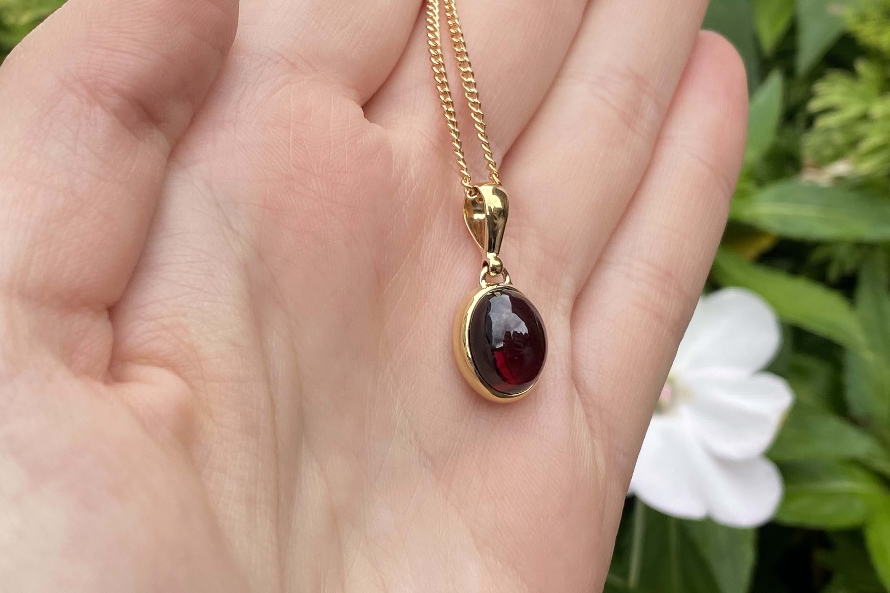 SOLD Handmade 9ct Yellow Gold Oval Cabochon Garnet Pendant