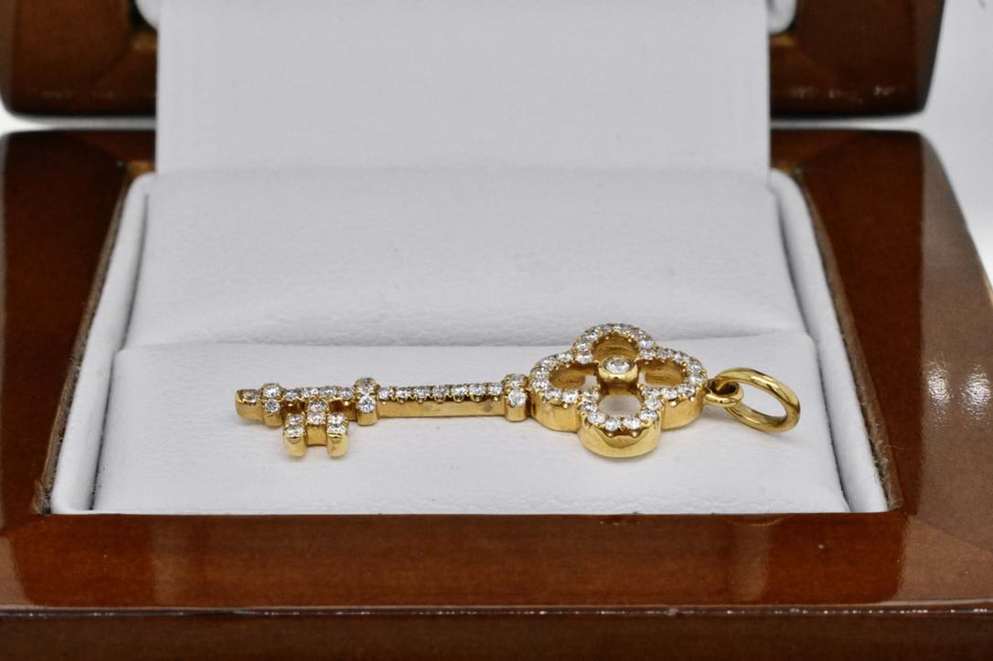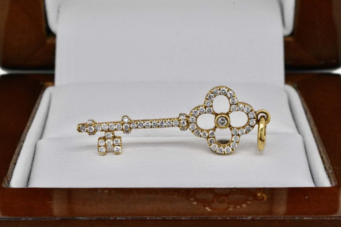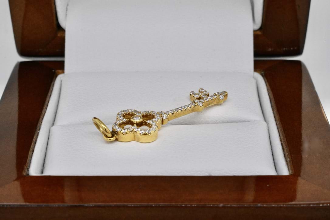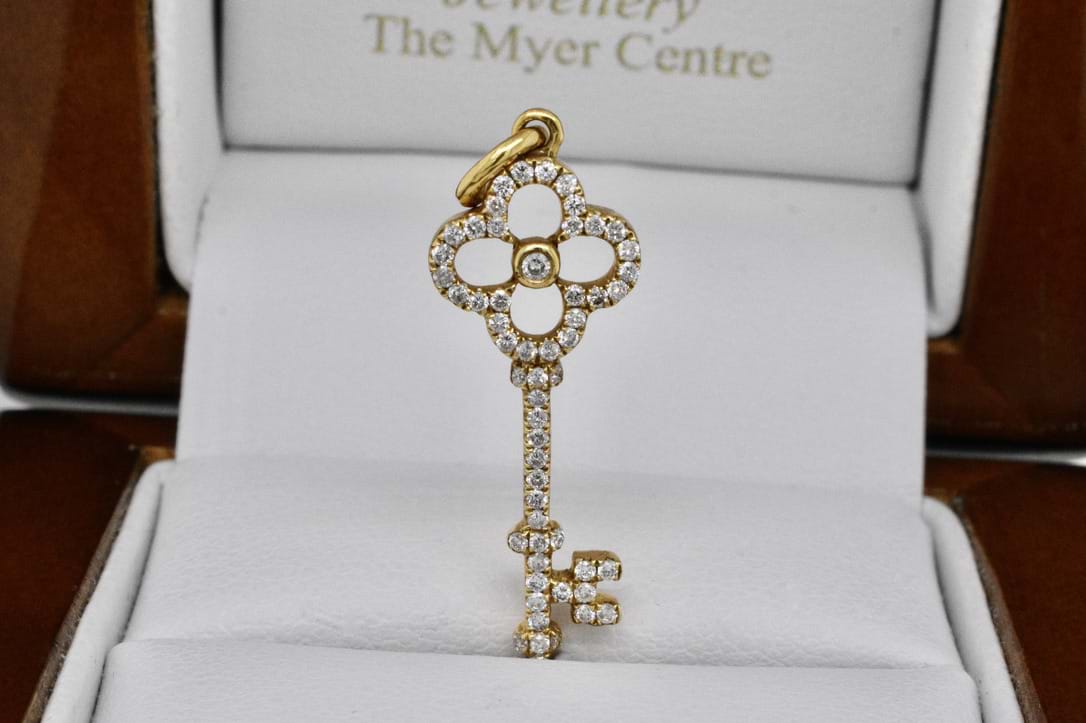Set in 18ct yellow gold this diamond encrusted keys contains 0.23ct sparkling white diamond. The perfect gift for a 21st or for that person that holds the key to your heart.