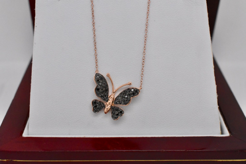18ct Rose Gold Black Diamond Butterfly Necklace