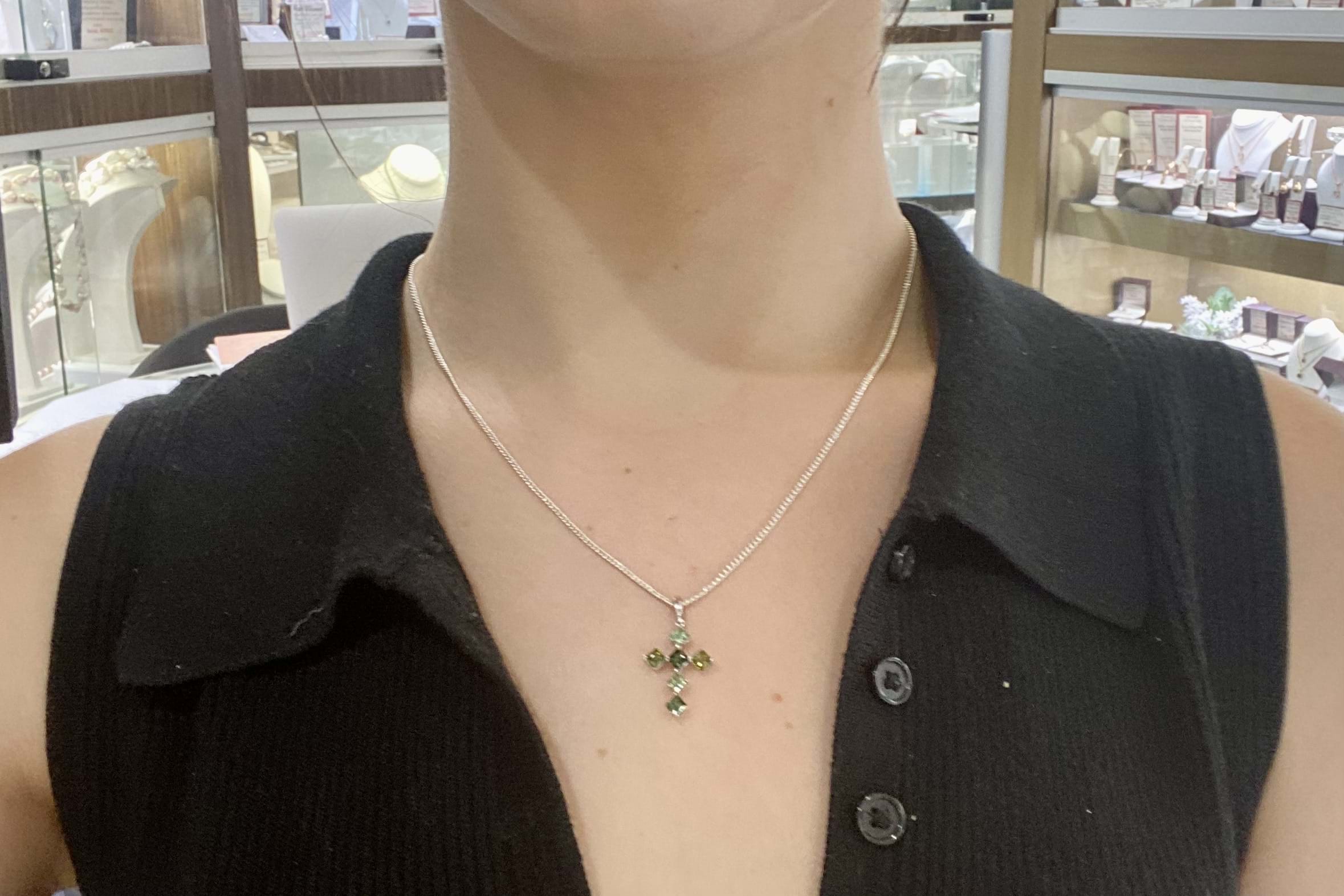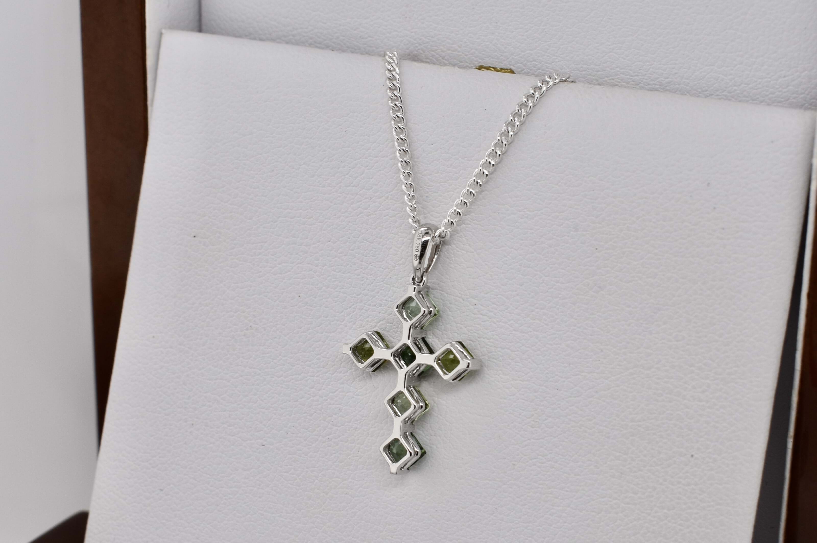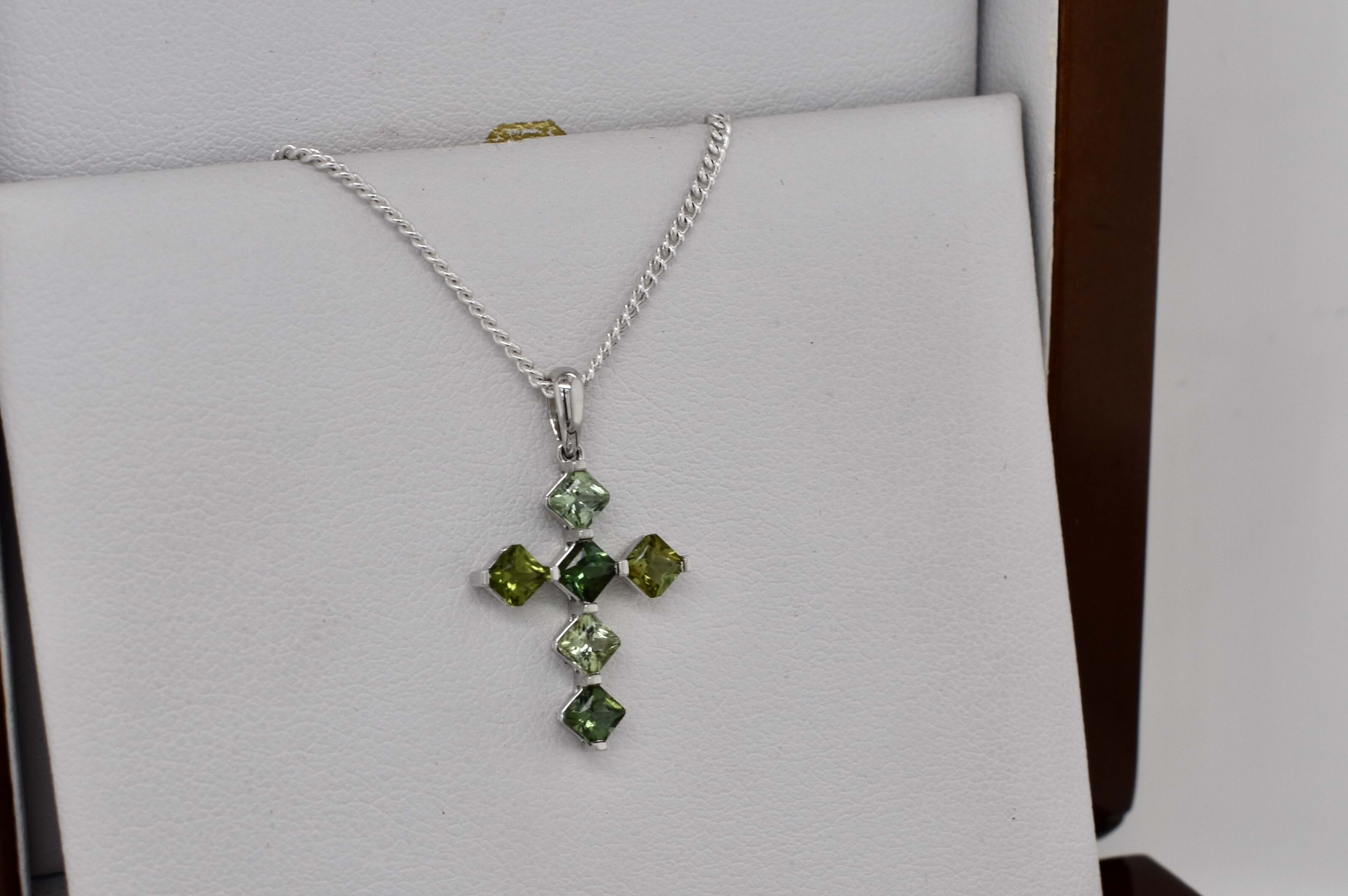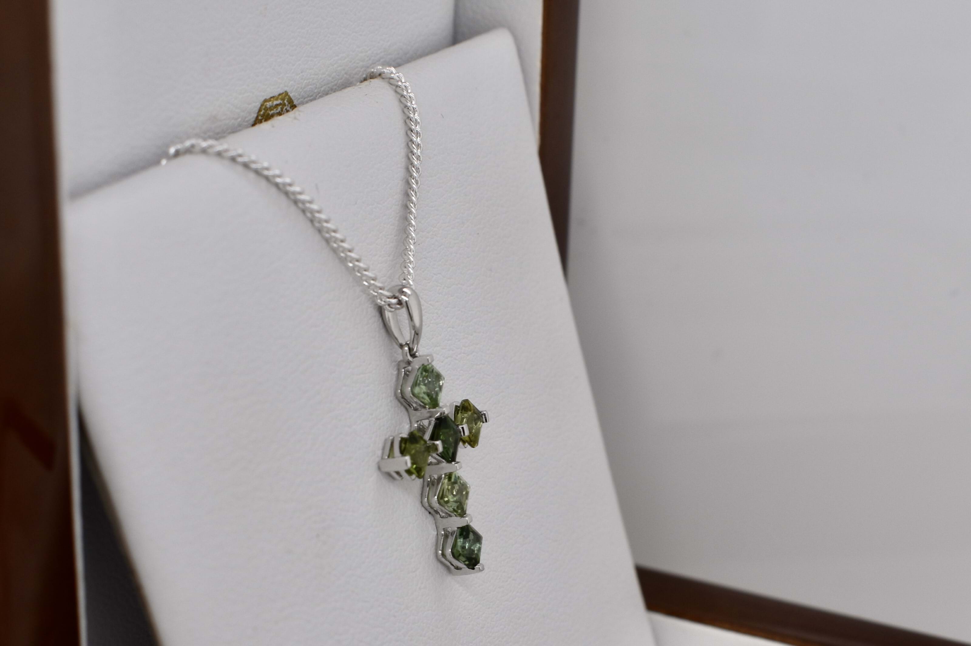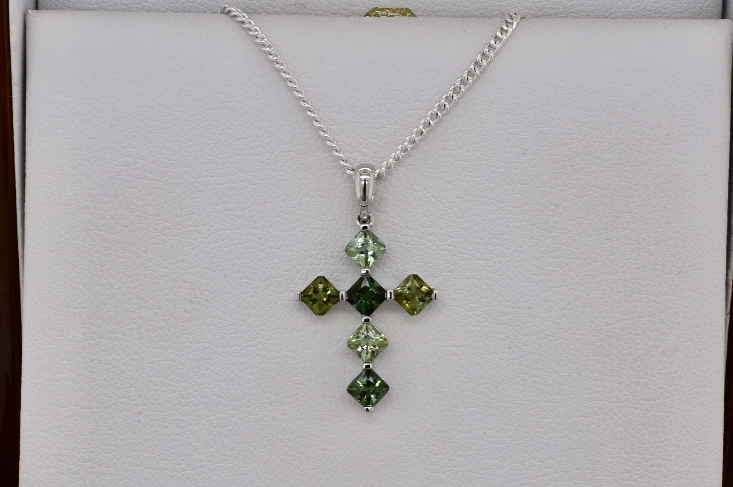 SOLD 18ct White Gold 1.21ct Green Tourmaline Multi Tone Cross Pendant