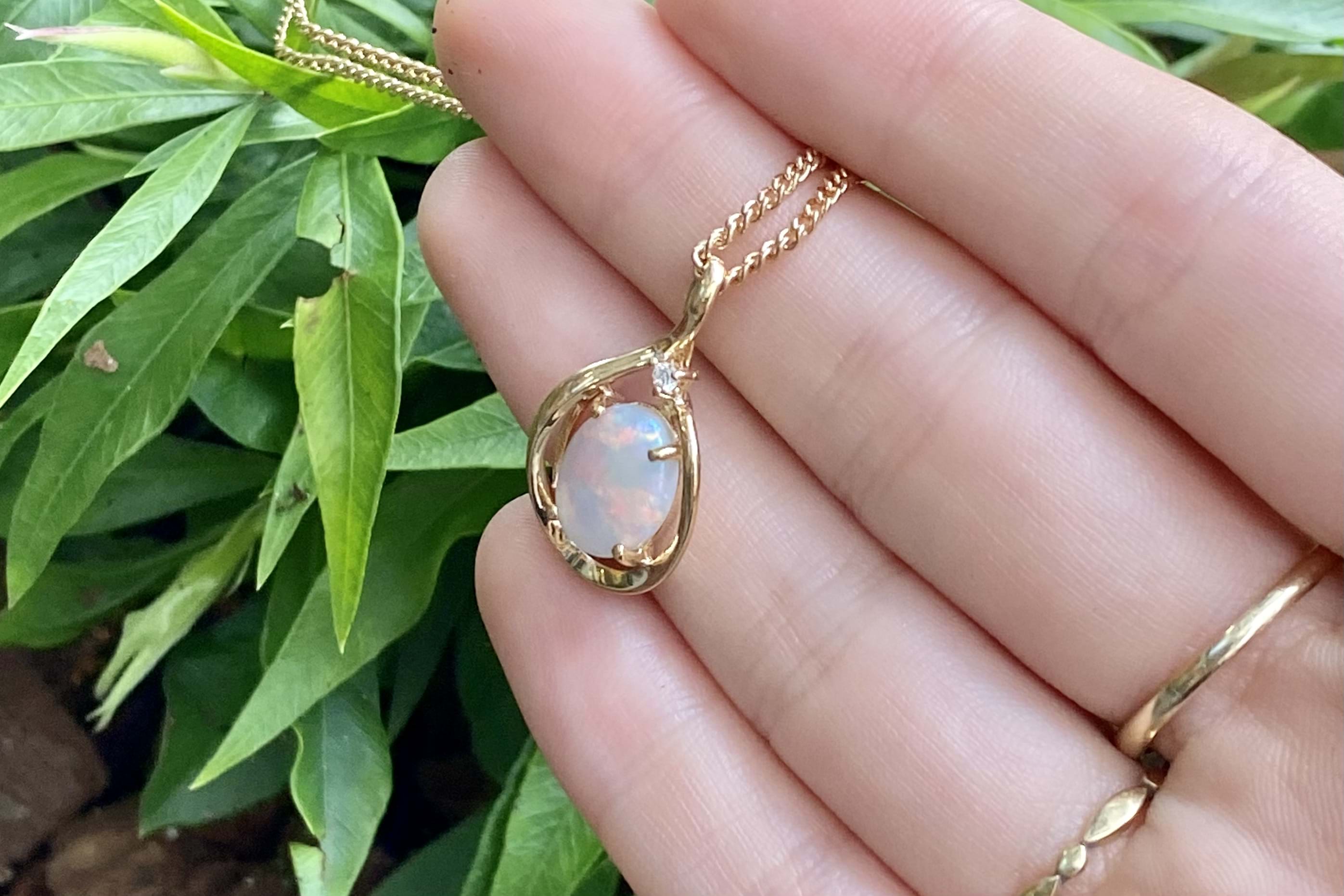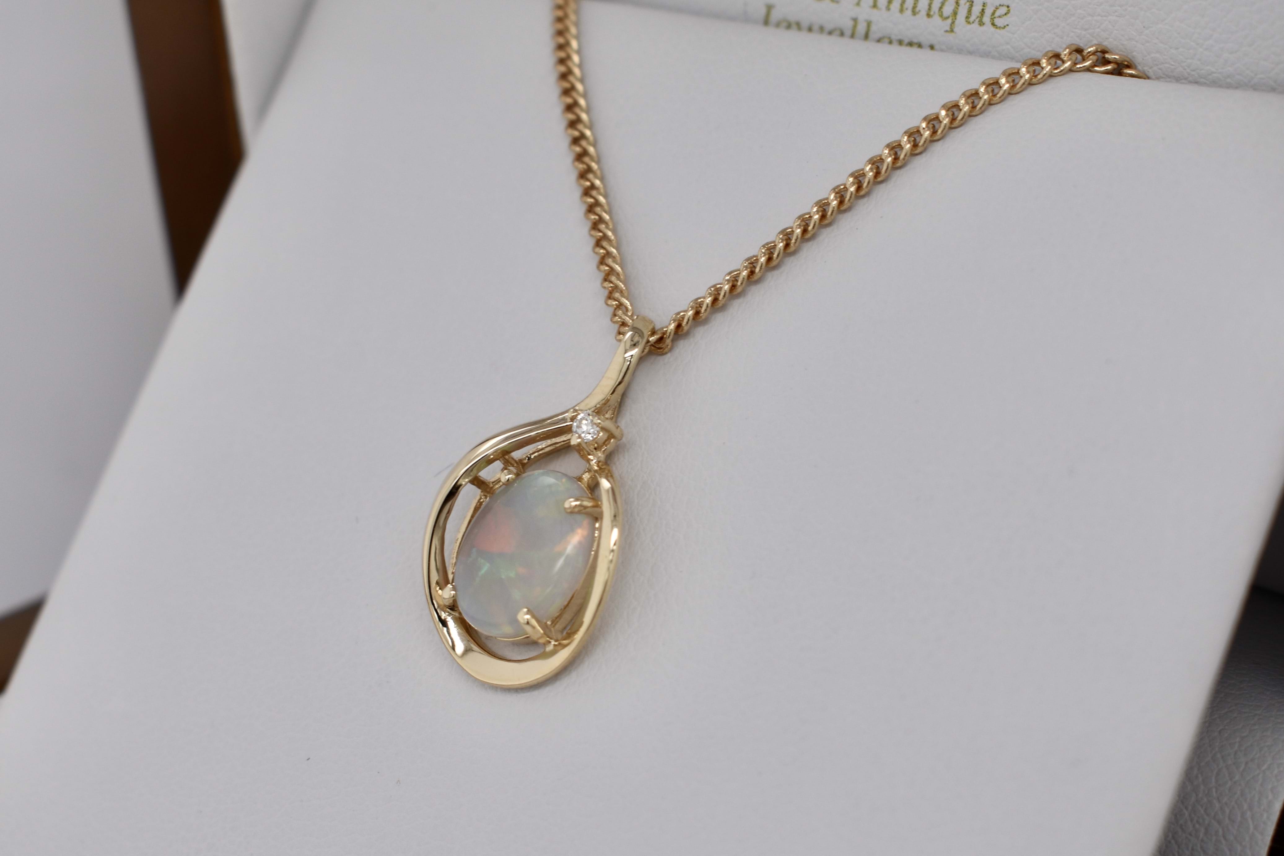 SOLD 9ct Yellow Gold 1.10ct Coober Pedy Oval Opal & 0.025ct Diamond Pendant