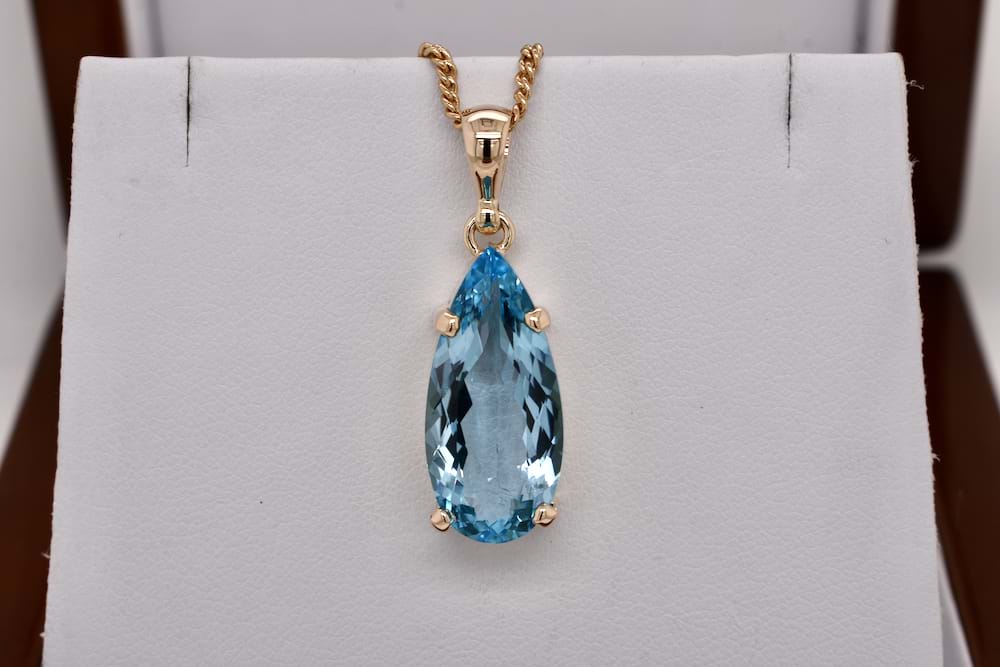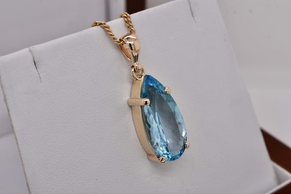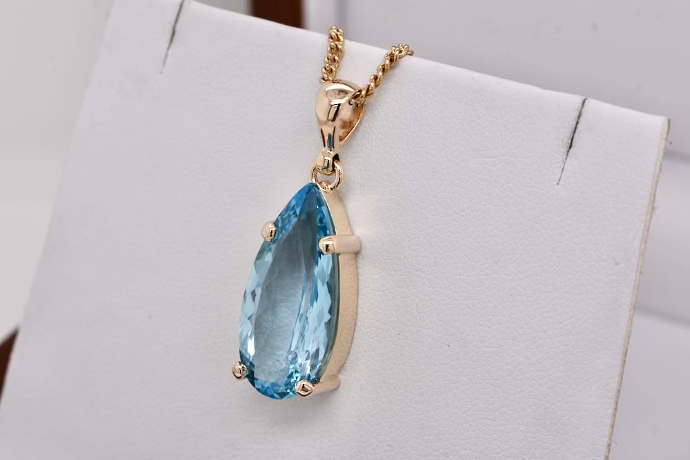 SOLD 9ct Yellow Gold Long Teardrop Blue Topaz Pendant