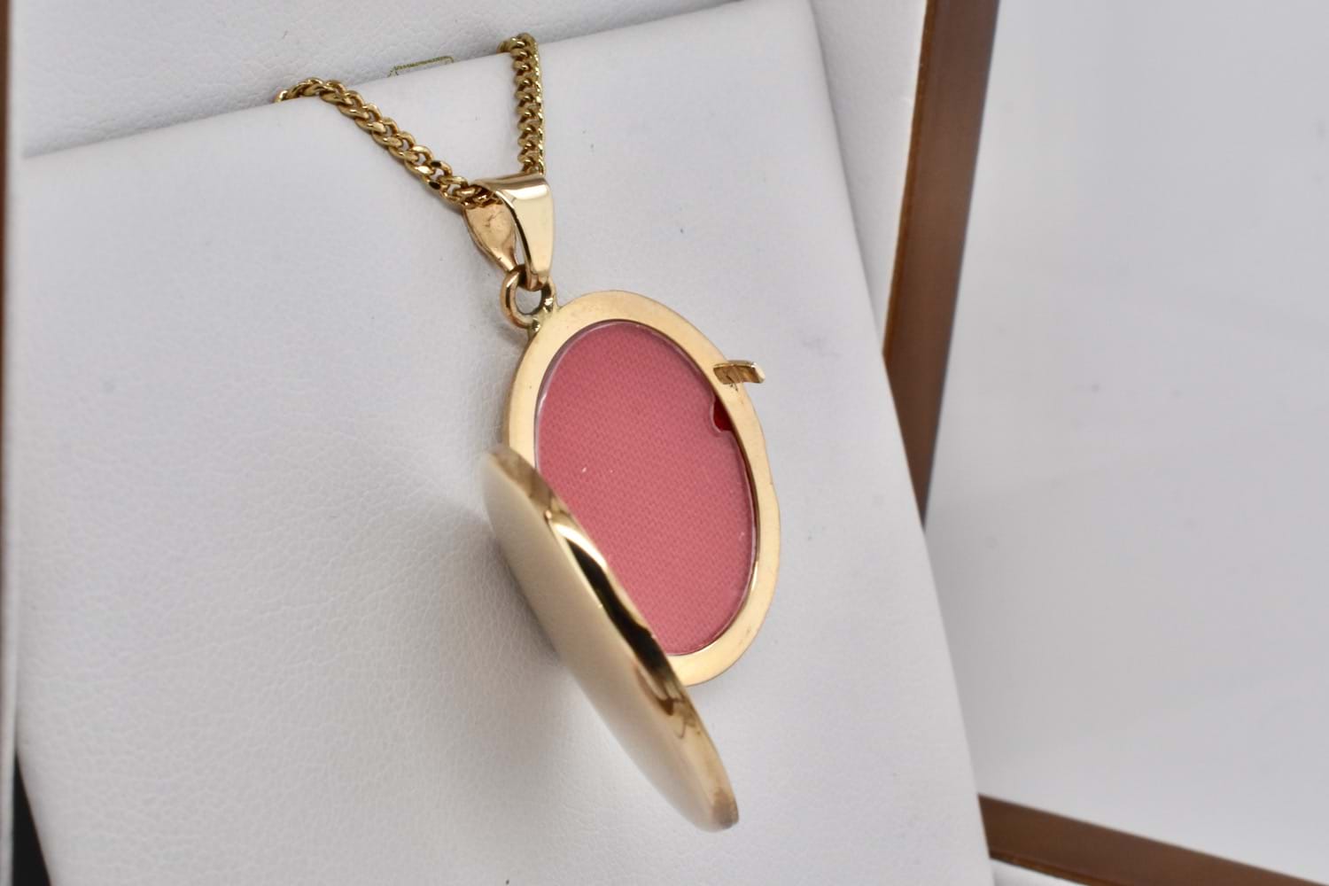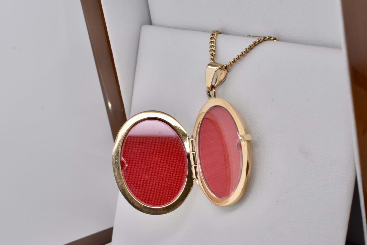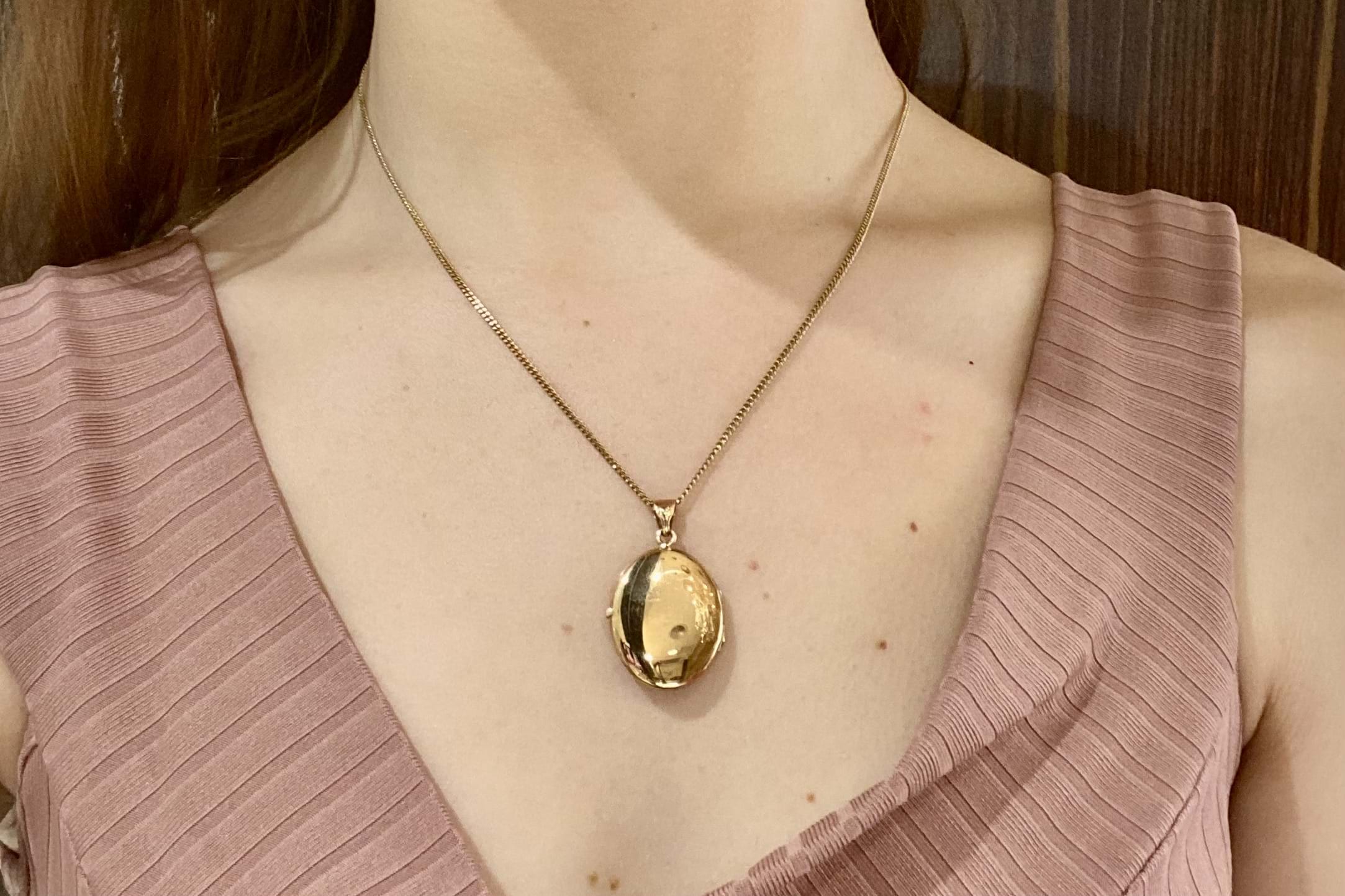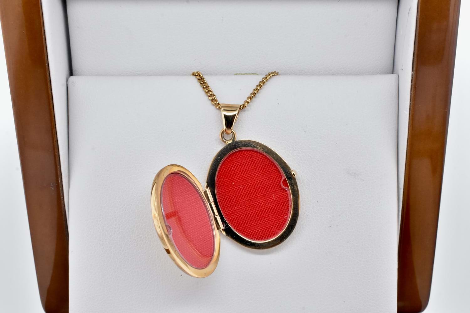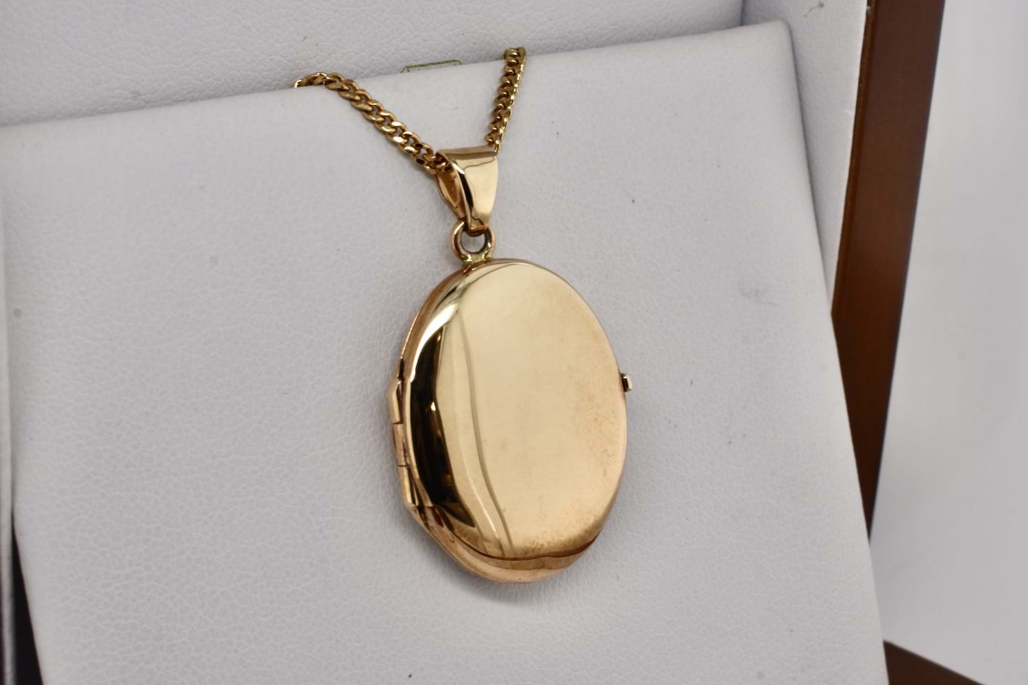 A simple and timeless plain 9ct yellow gold oval photo locket, the perfect sentimental keepsake gift. Measures 26x21mm