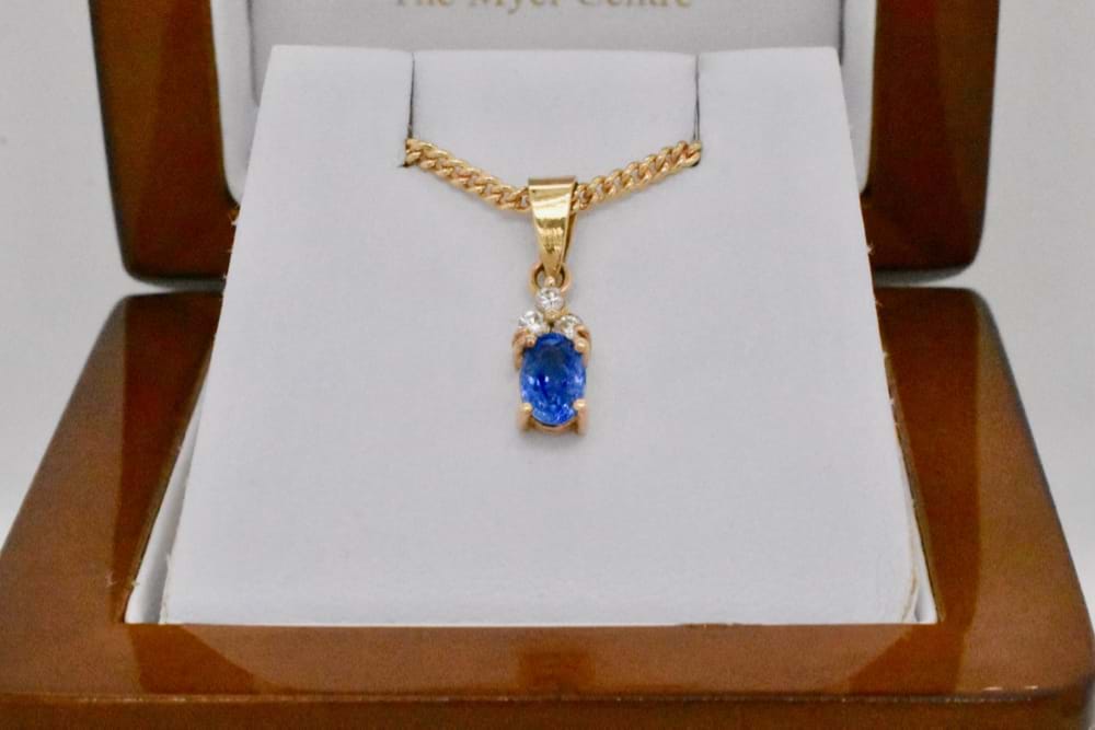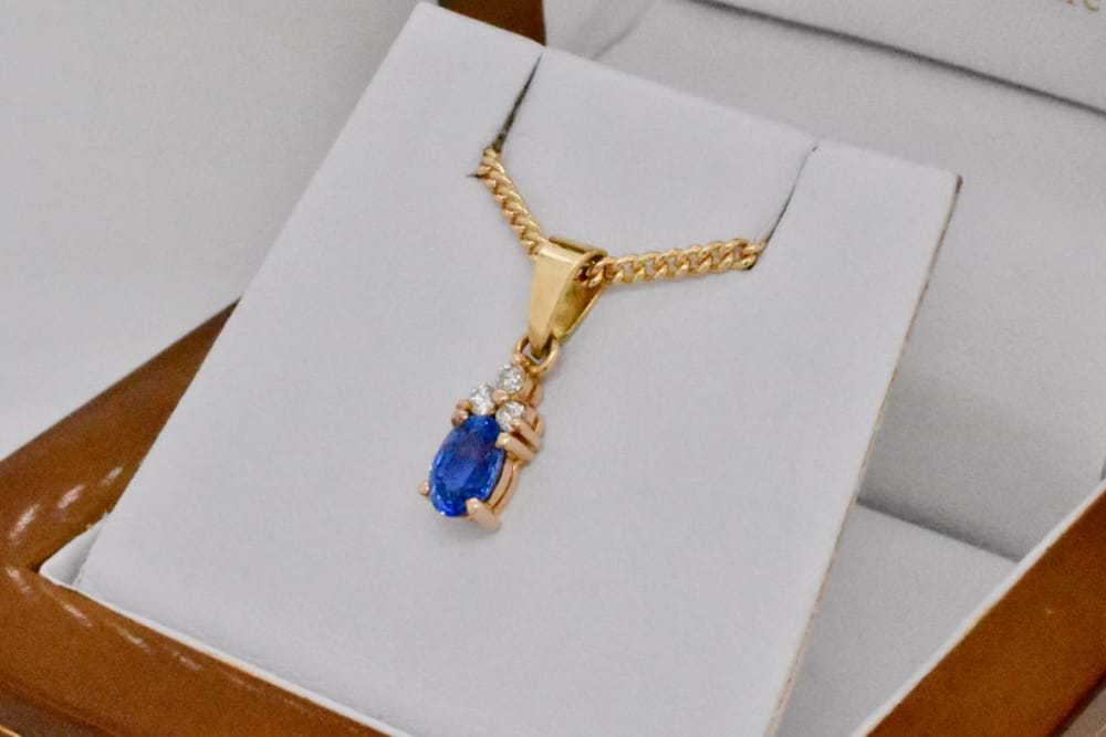 SOLD Handmade 18ct Yellow Gold 0.51ct Sapphire & 0.06ct Diamond Pendant