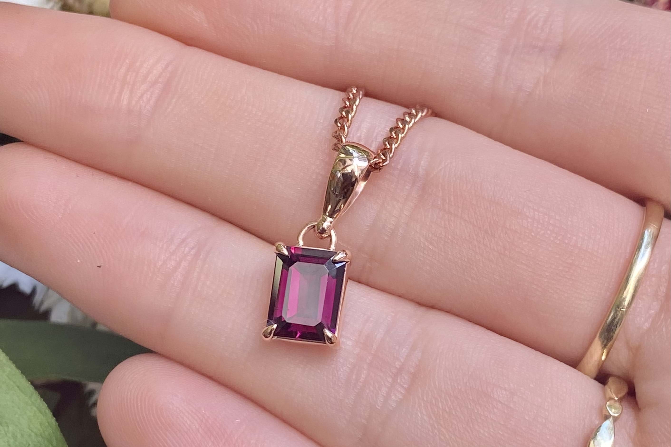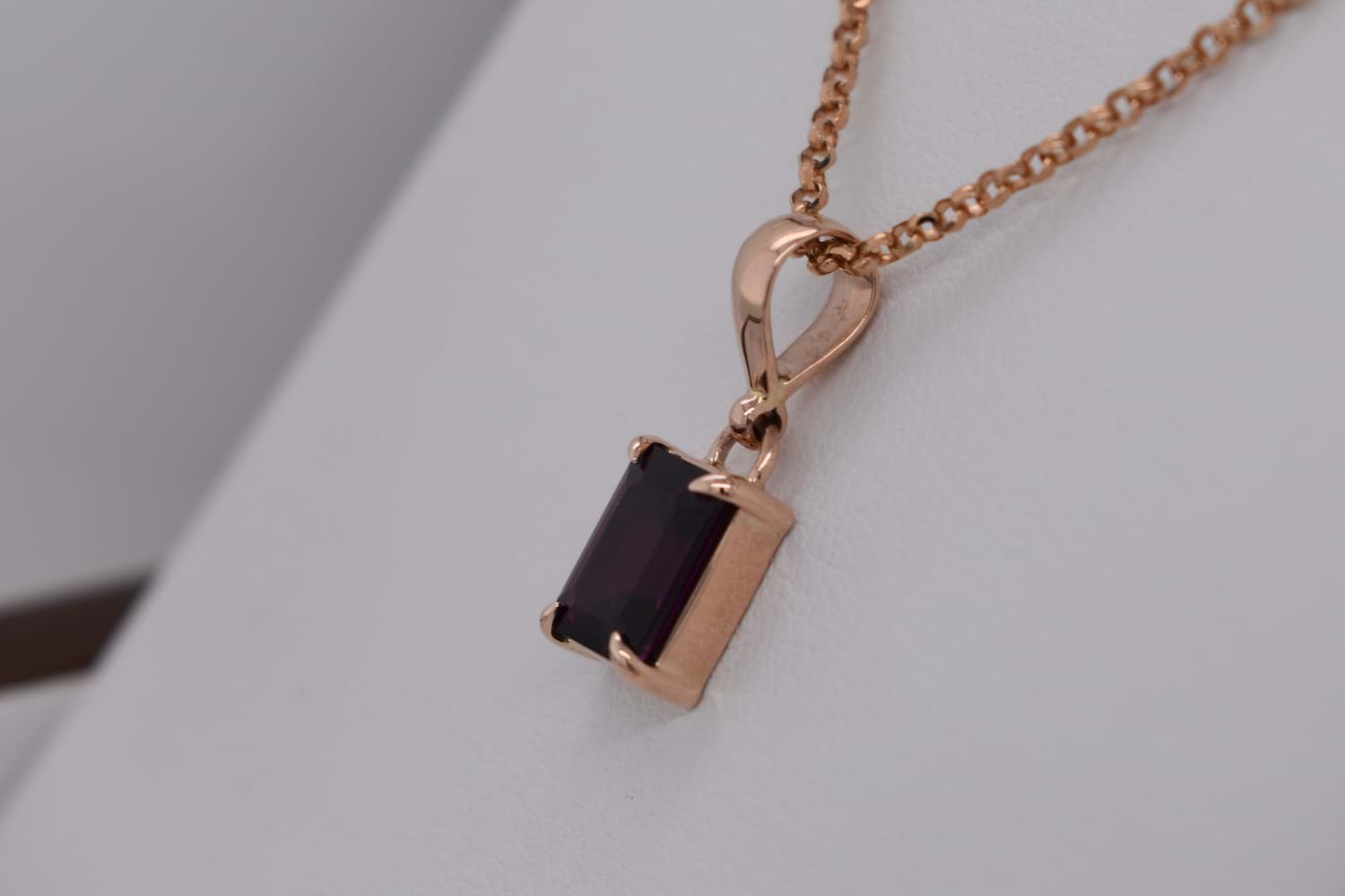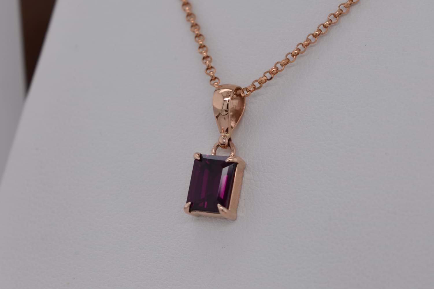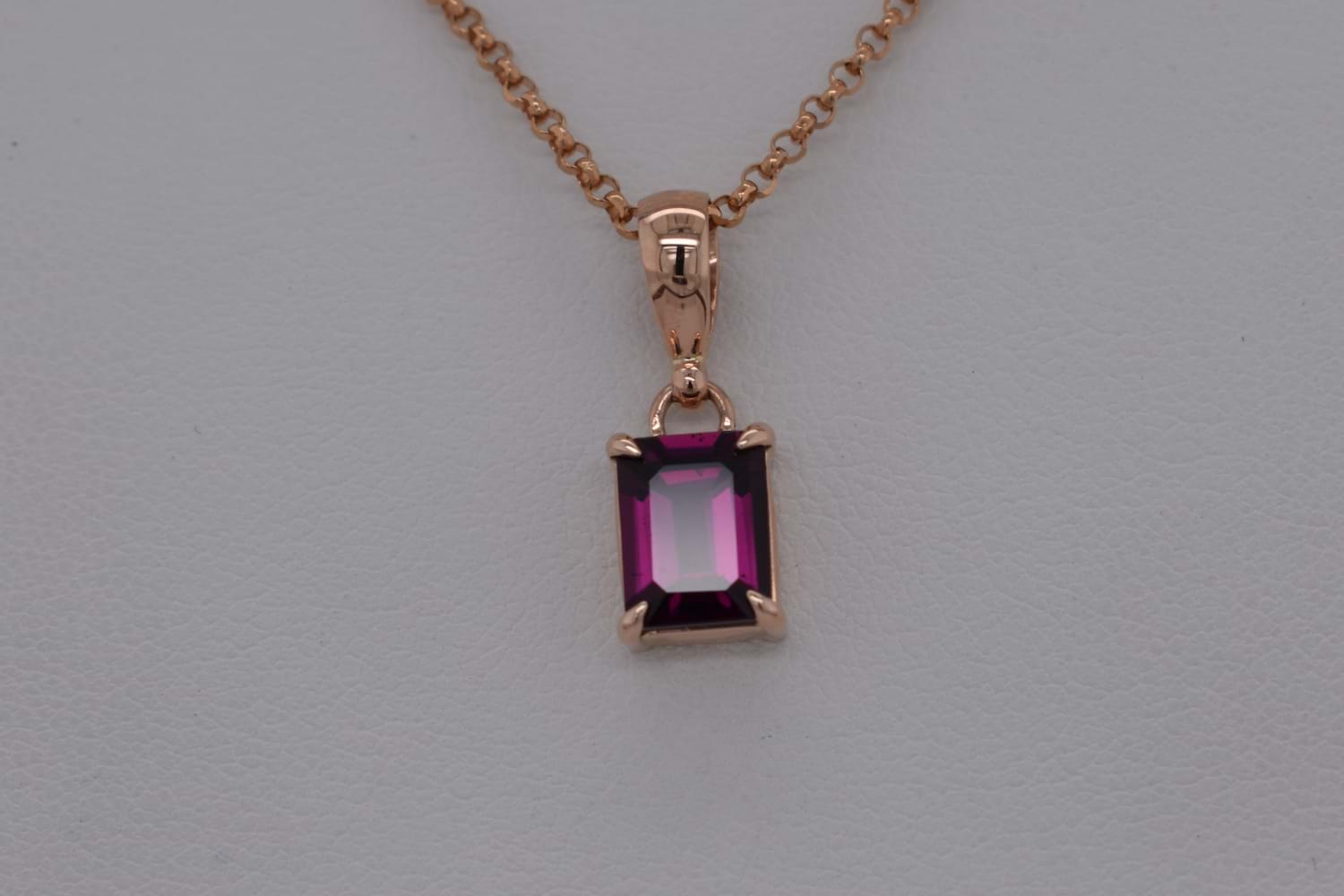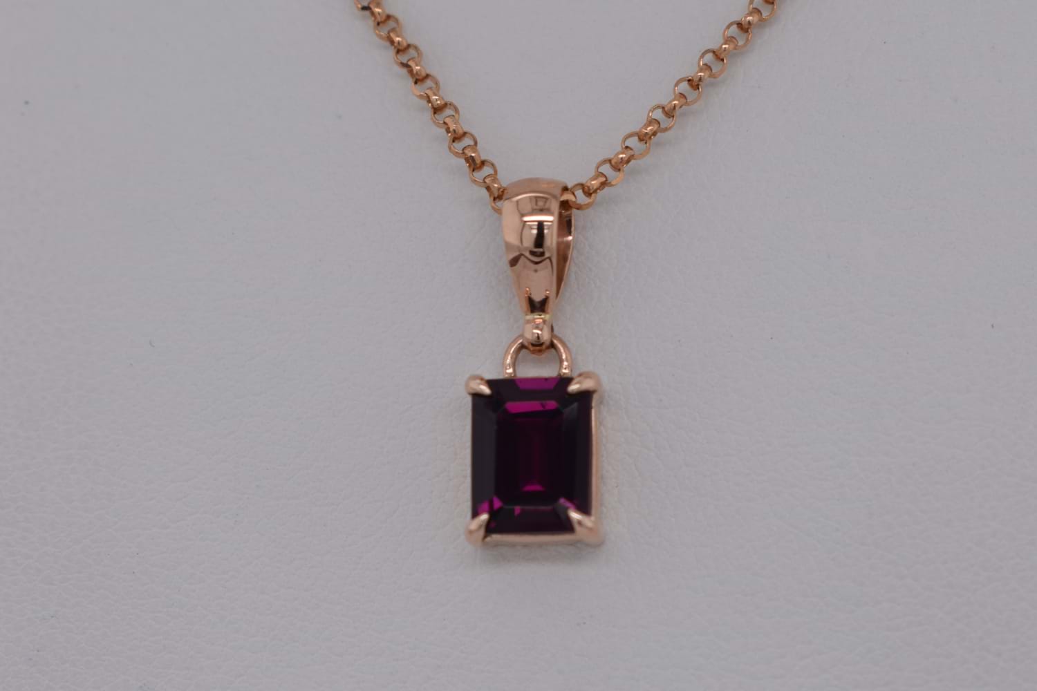 SOLD Handmade 9ct Rose Gold Emerald Cut Rhodolite Garnet Pendant