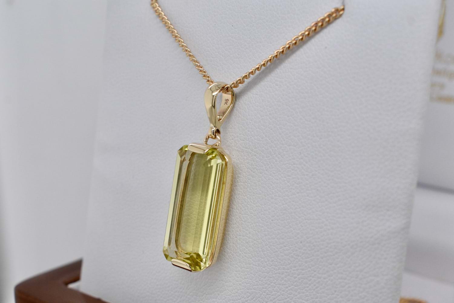 SOLD Handmade 9ct Yellow Gold 23x10mm Lemon Quartz Pendant
