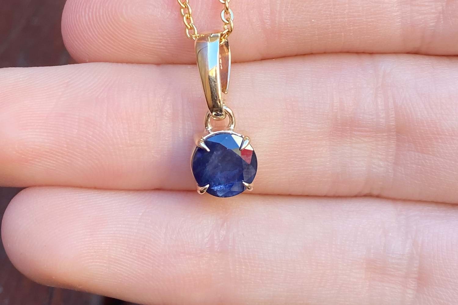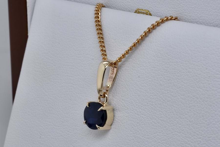 SOLD Handmade 9ct Yellow Gold 4mm Round Thai Sapphire Pendant