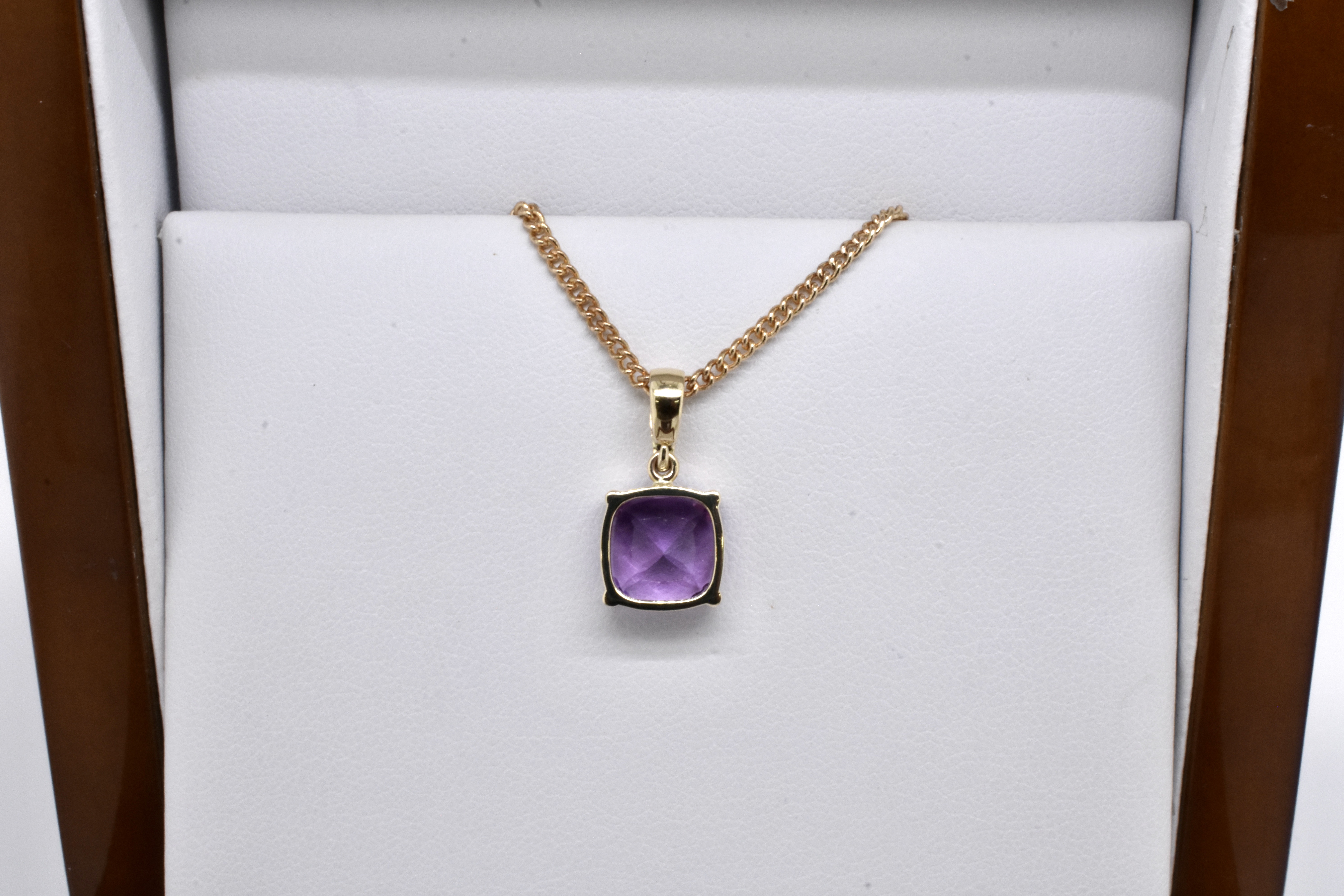 SOLD Handmade 9ct Yellow Gold 9mm Cushion Amethyst Pendant