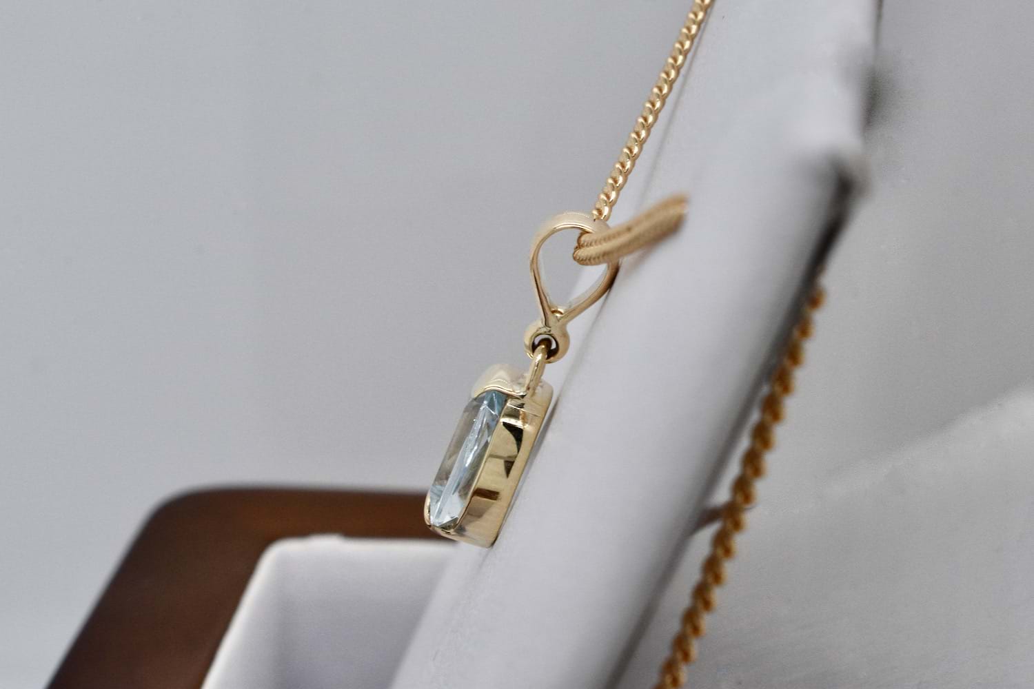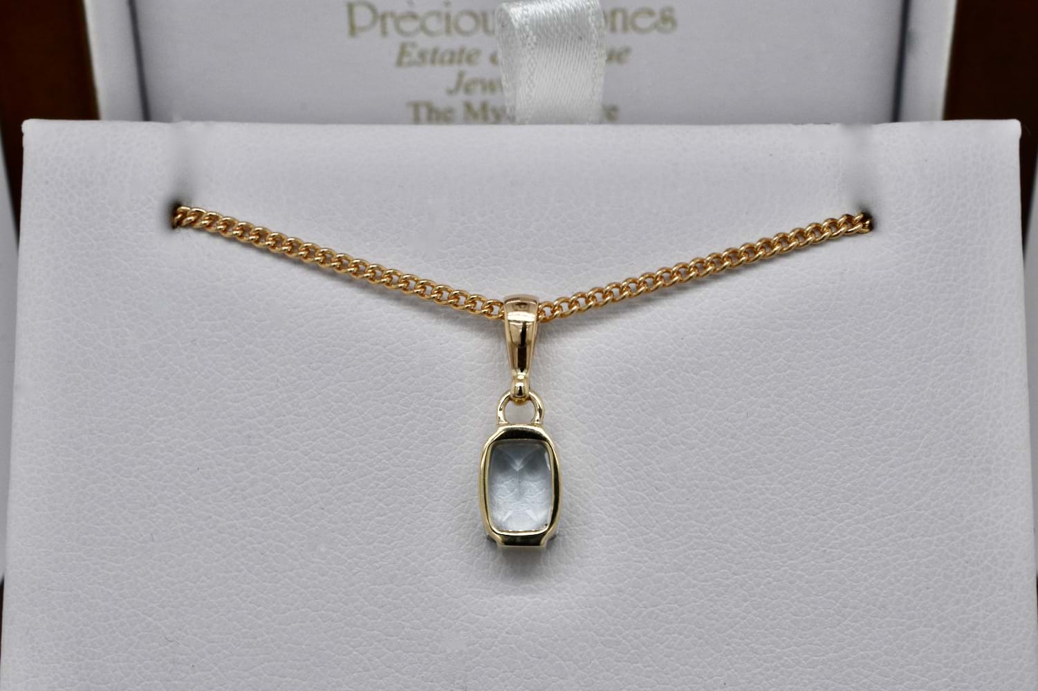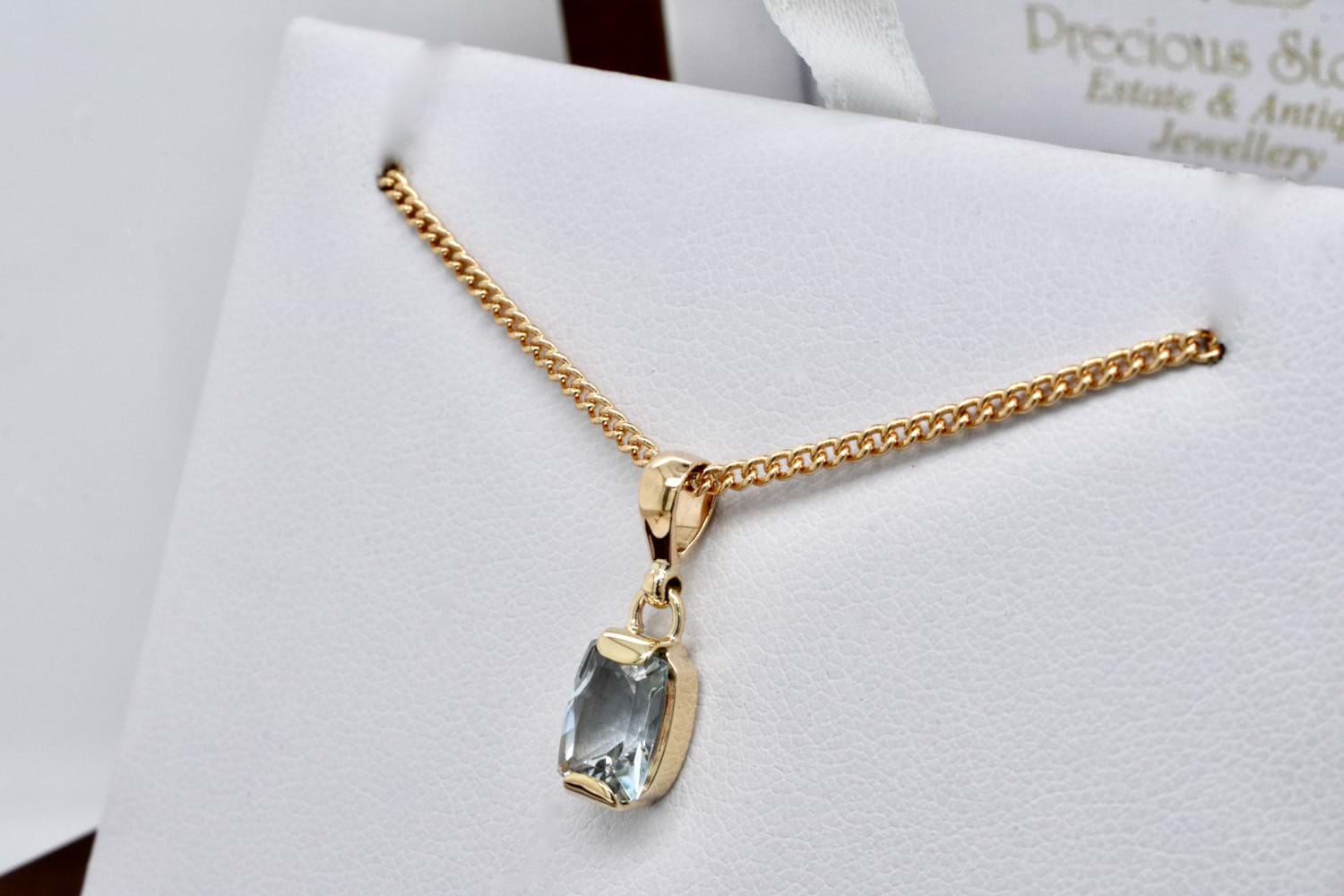 SOLD Handmade 9ct Yellow Gold Cushion Cut Aquamarine Pendant