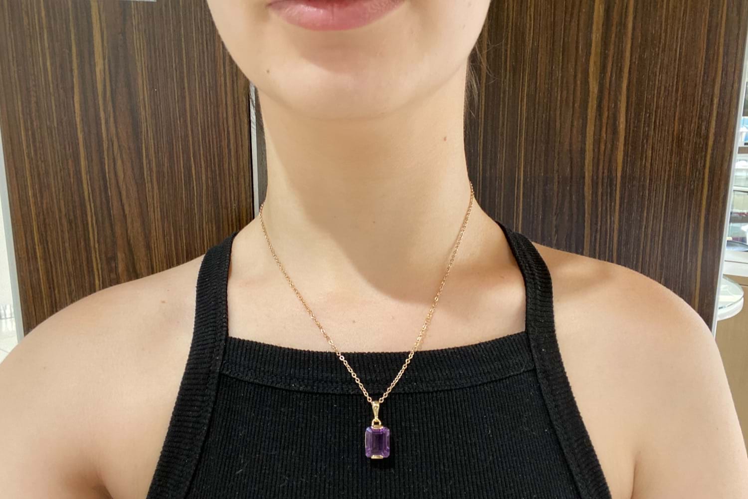 SOLD Handmade 9ct Yellow Gold Emerald Cut Amethyst Pendant