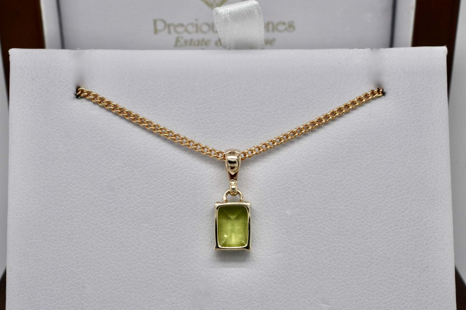 SOLD Handmade 9ct Yellow Gold Emerald Cut Peridot Pendant