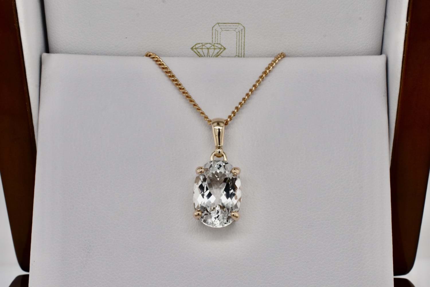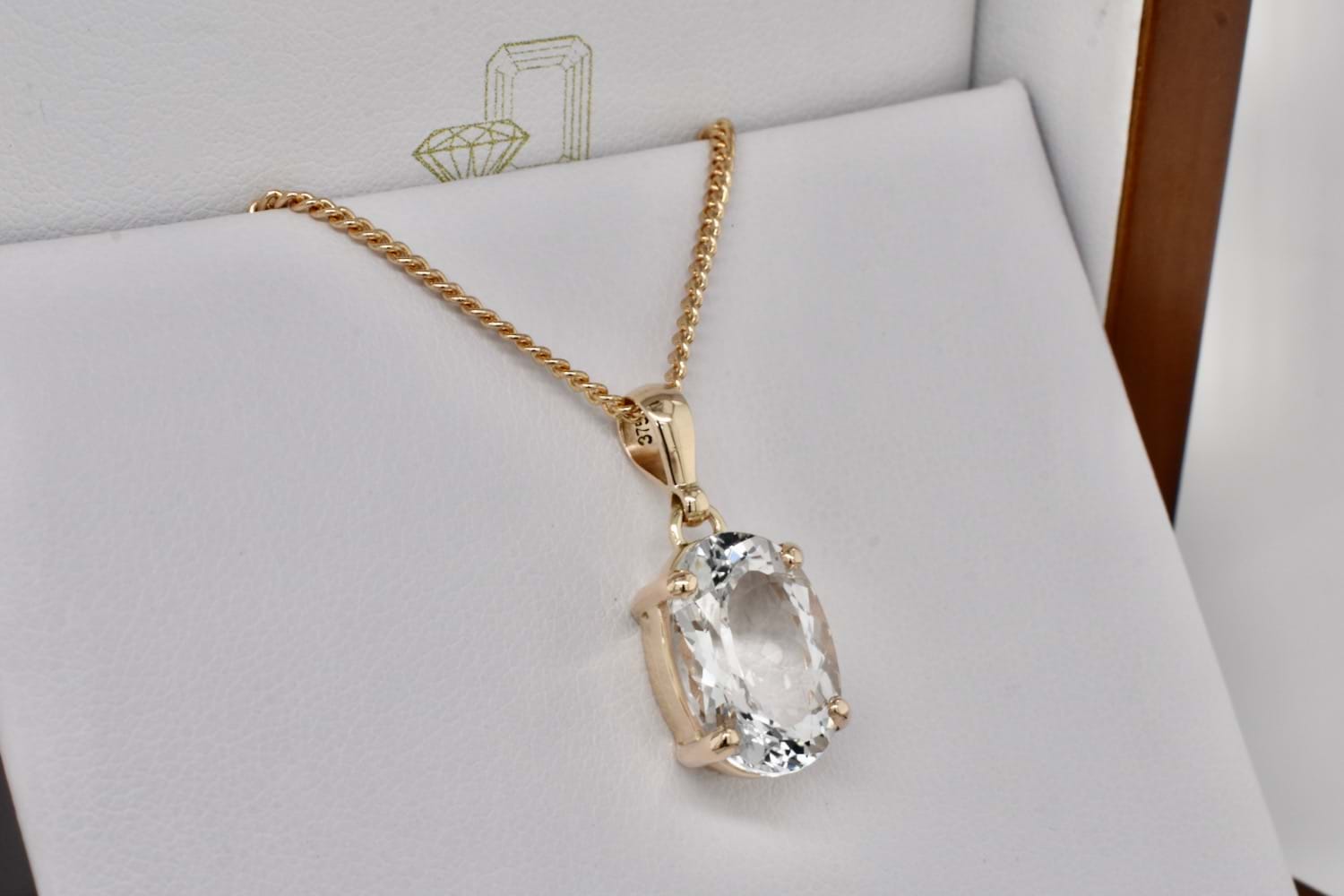 Handmade 9ct yellow gold pendant featuring a four claw set faceted oval white topaz measuring 14x10.1mm. Chains are available for separate purchase