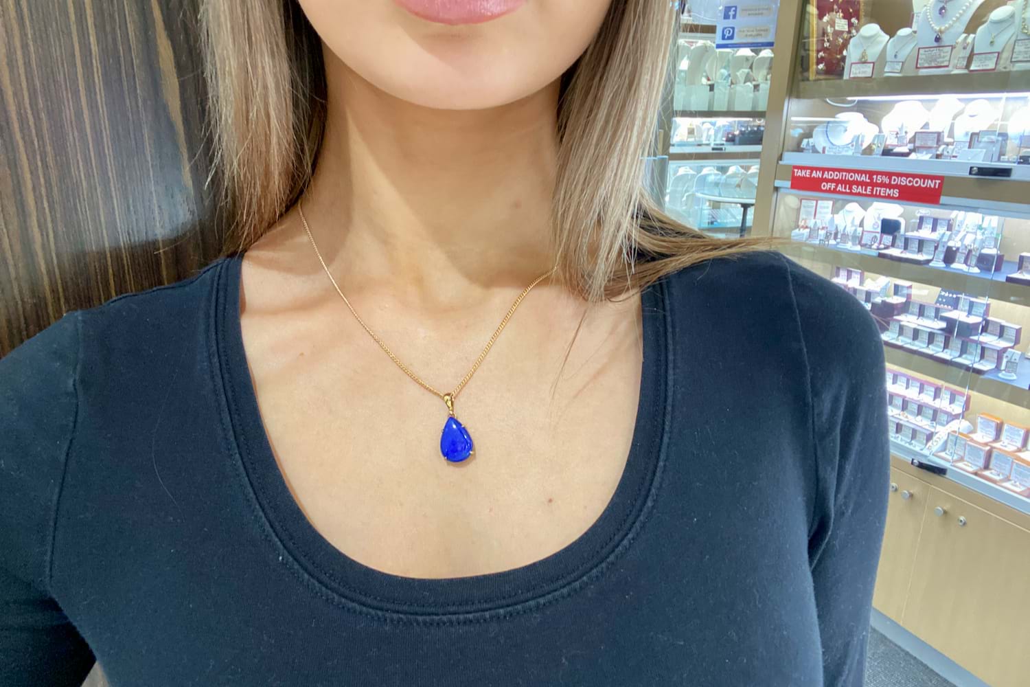 SOLD Handmade 9ct Yellow Gold Pearshape Lapis Pendant