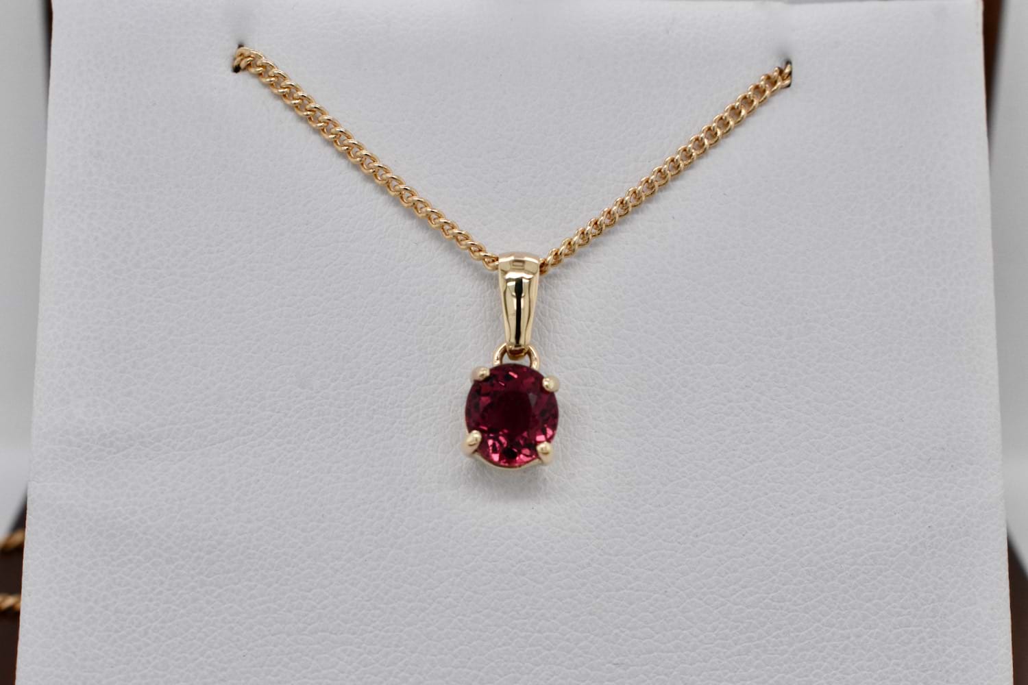 SOLD Handmade 9ct Yellow Gold Round Dark Pink Tourmaline Pendant