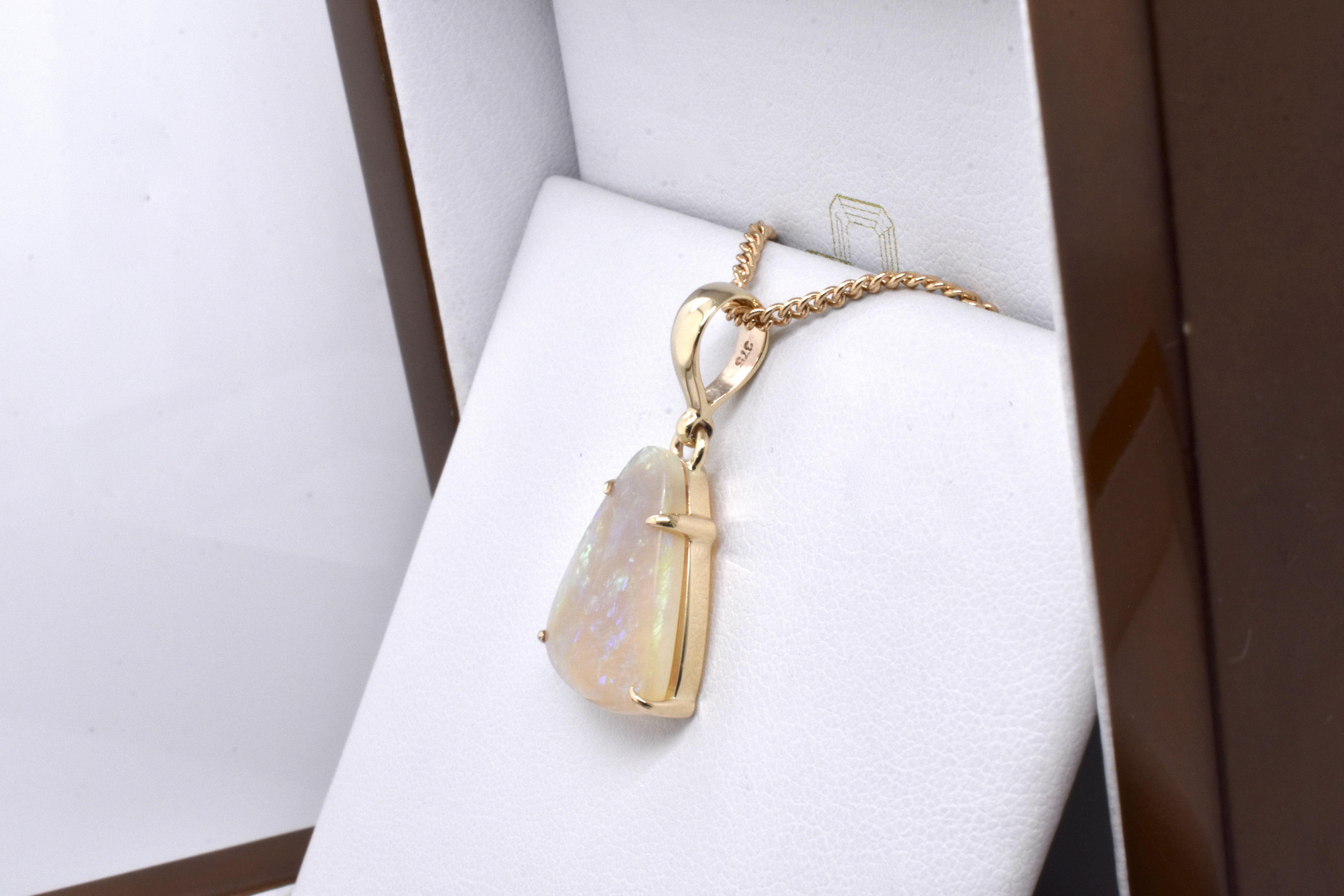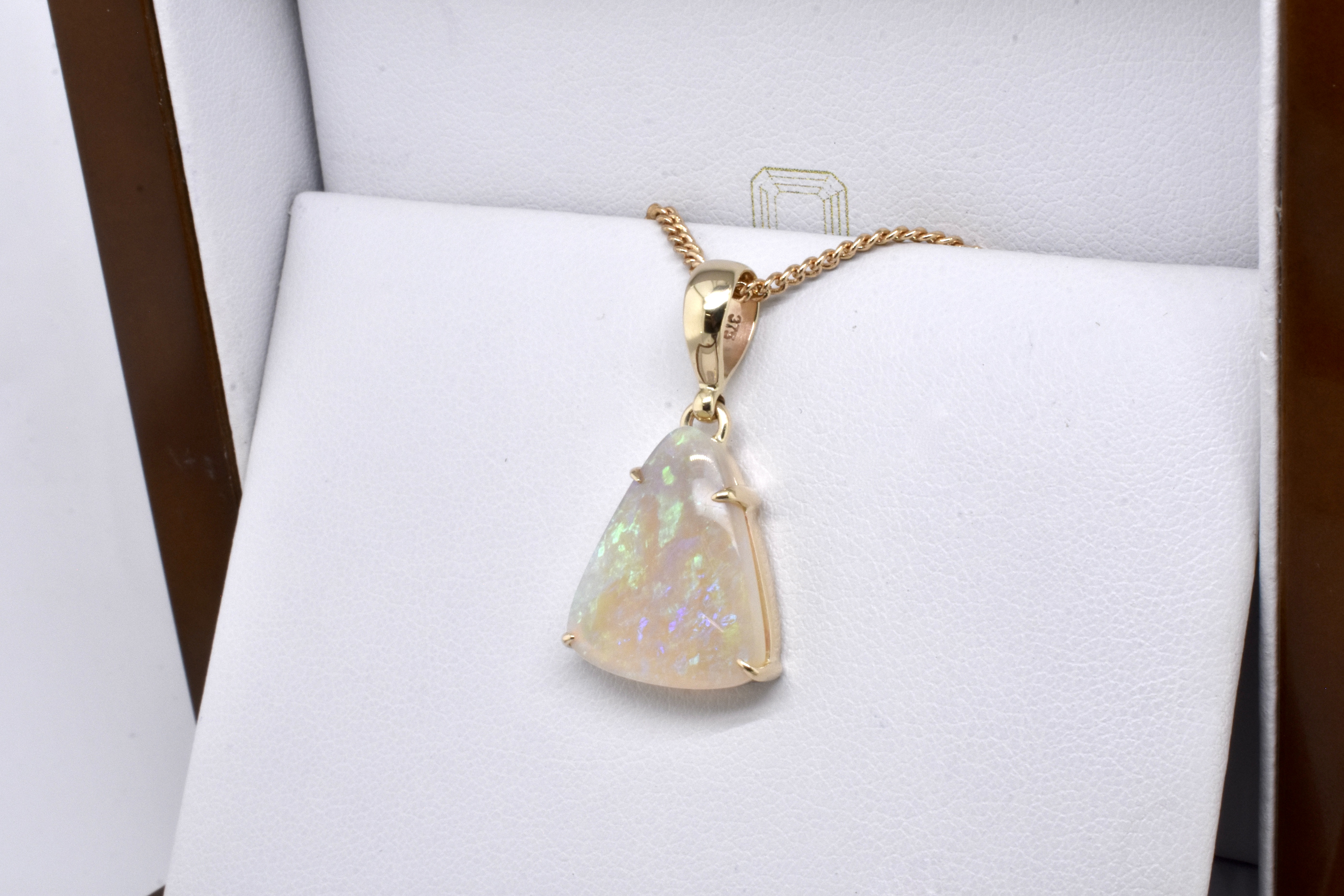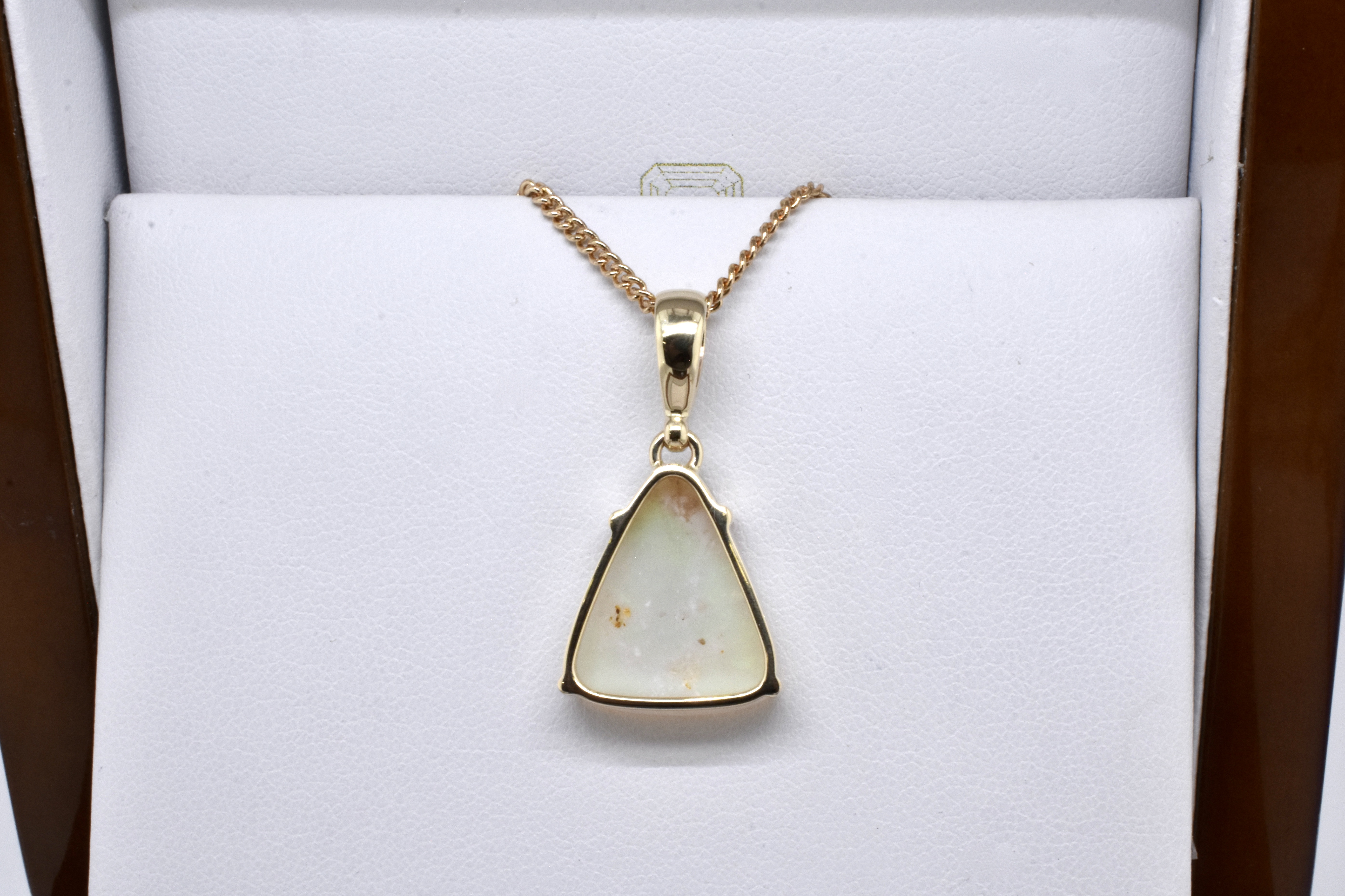 SOLD Handmade 9ct Yellow Gold Trilliant Mintabie Solid White Opal Pendant