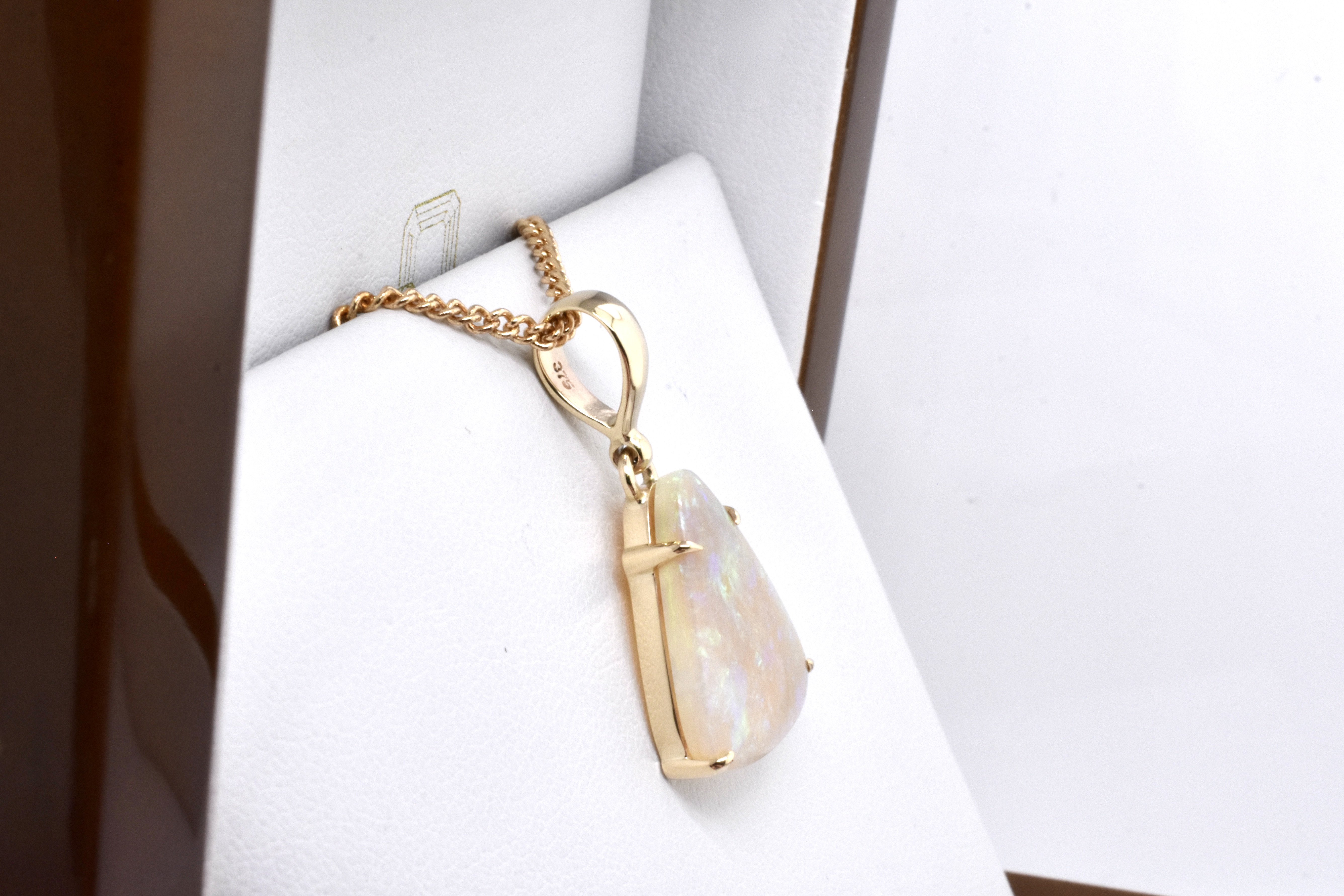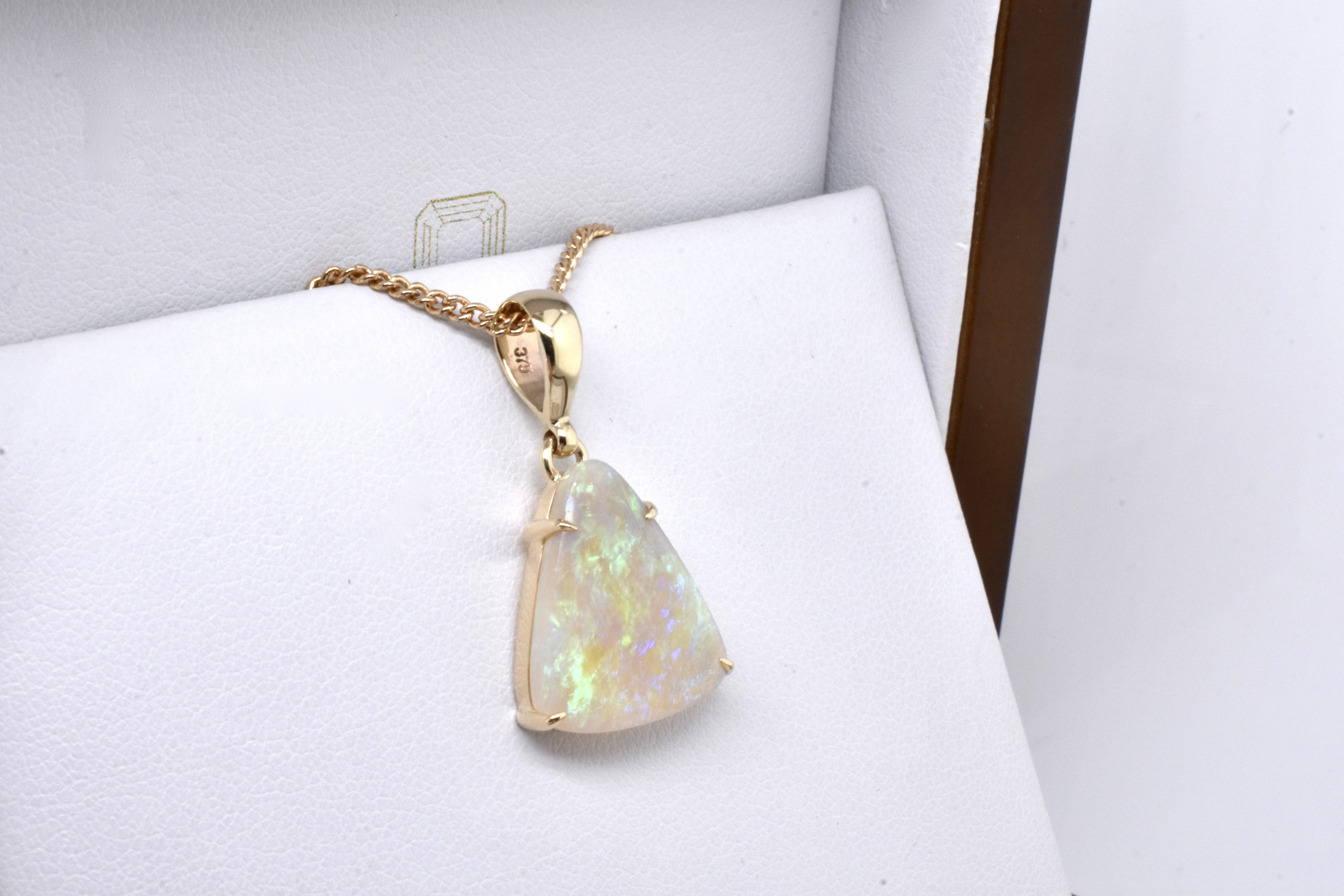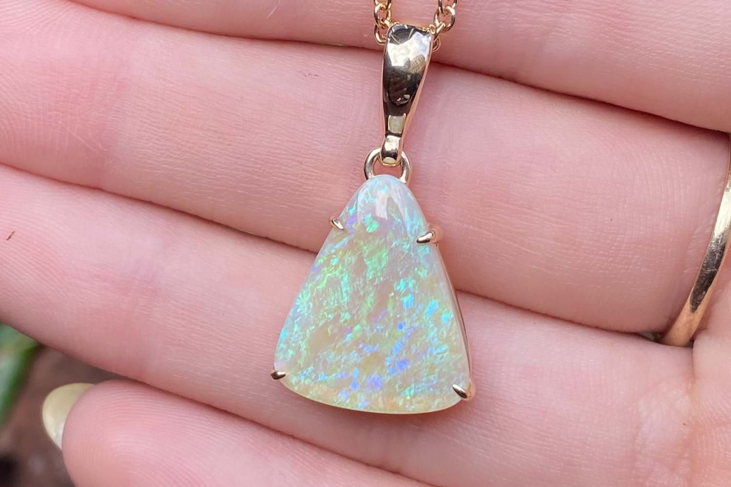 SOLD Handmade 9ct Yellow Gold Trilliant Mintabie Solid White Opal Pendant
