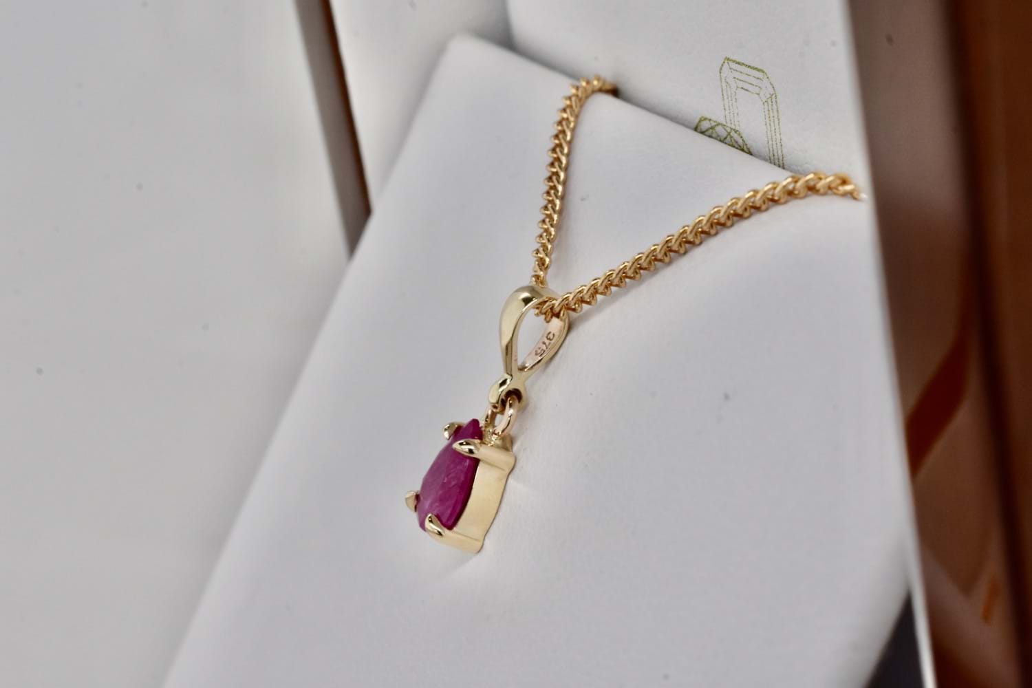 SOLD Handmade 9ct Yellow Gold Pearshape Ruby Pendant
