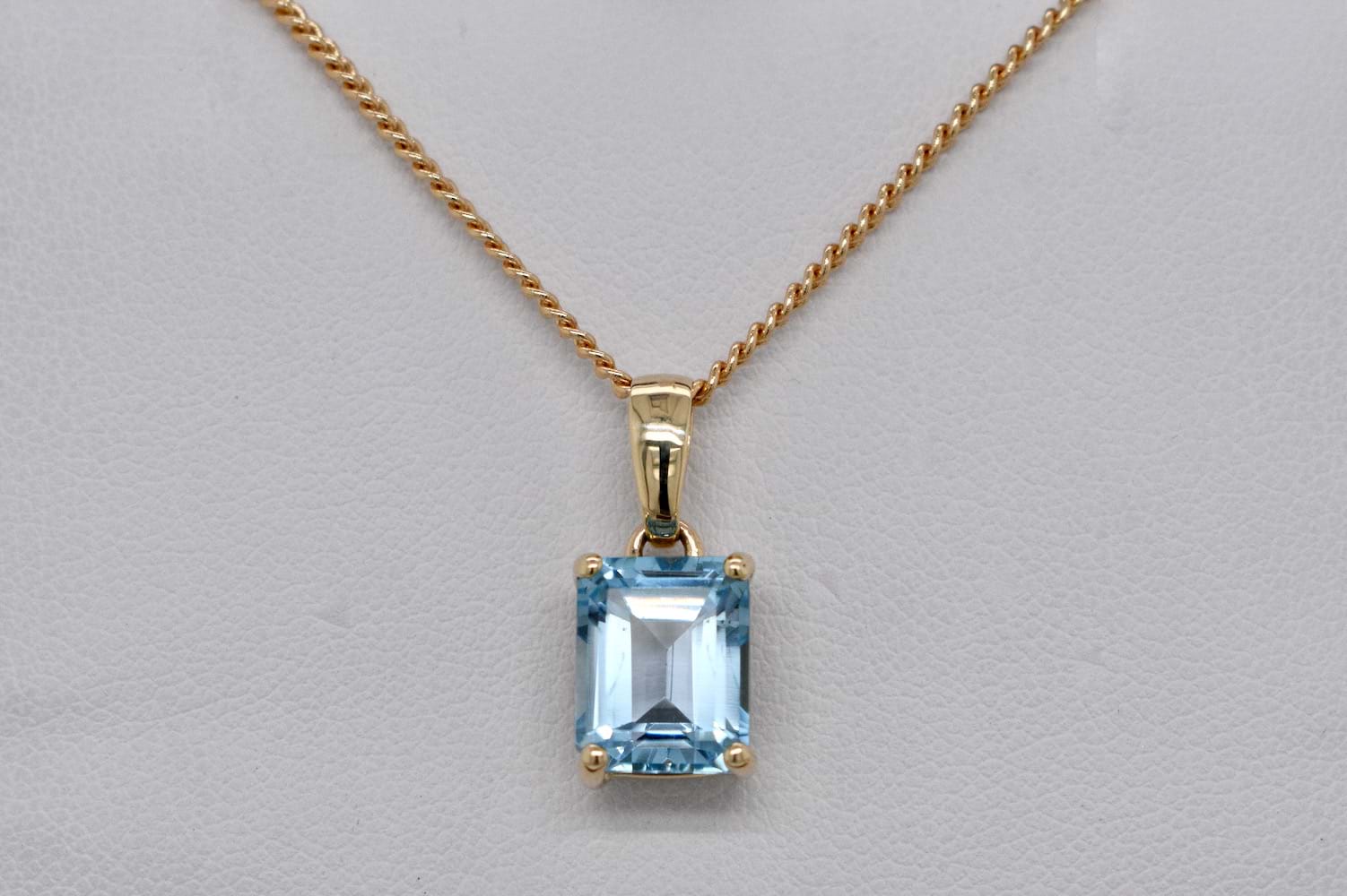 SOLD Handmade 9ct Yellow Gold Emerald Cut Sky Blue Topaz Pendant