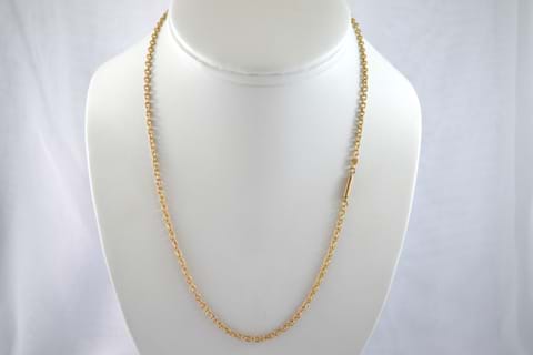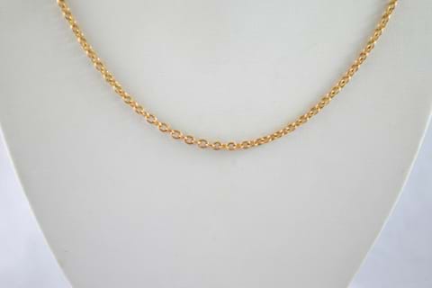 A 9ct gold antique chain, simple oval belcher links with it an original barrel clasp and a finish length of 45cm.