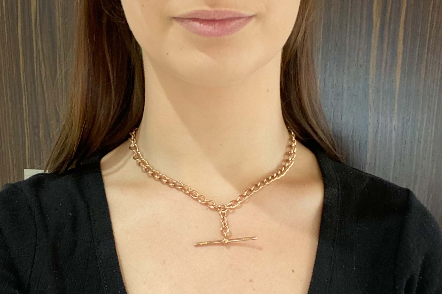 SOLD Antique 9ct Rose Gold Curb Link Albert Chain 41cm